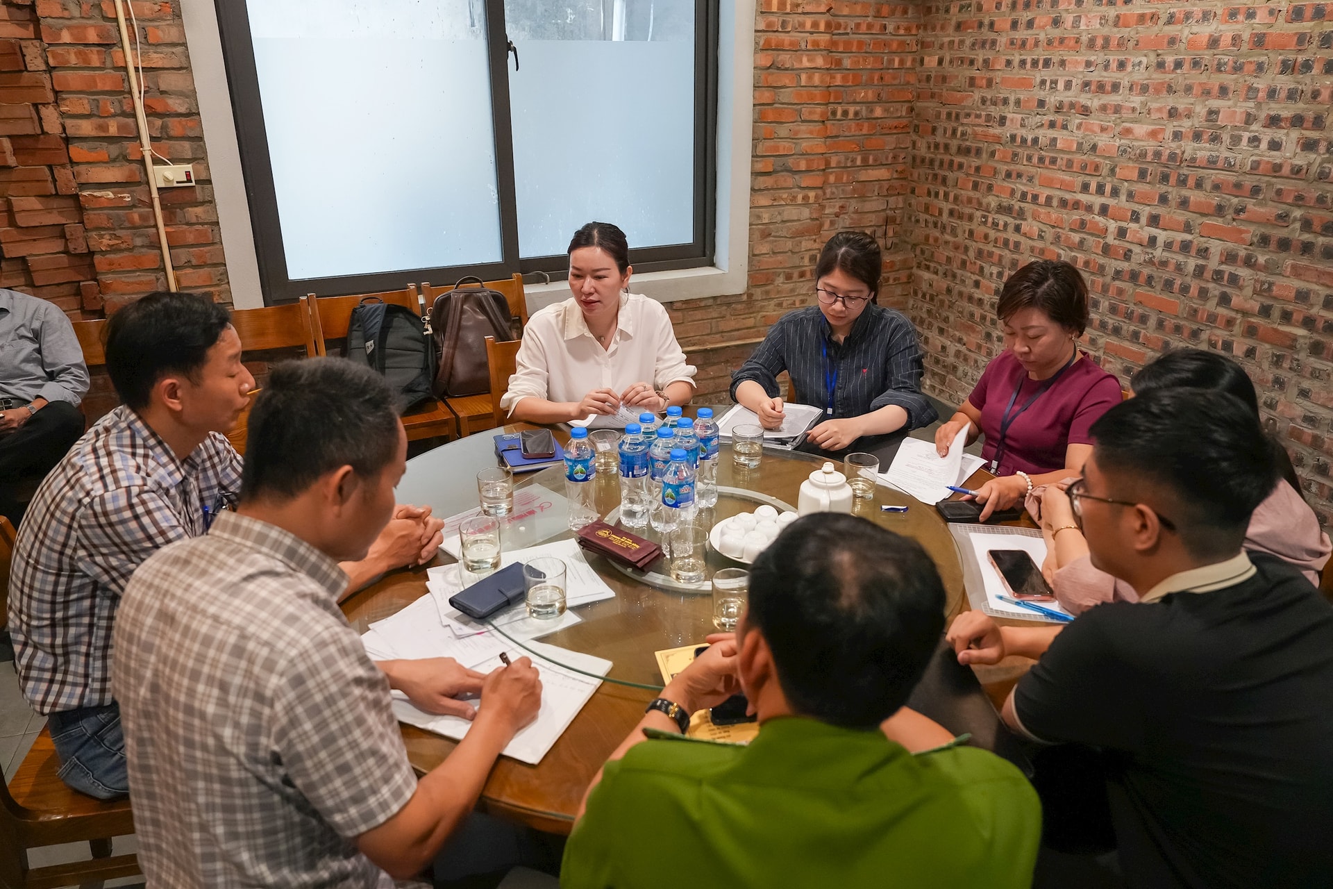 Đoàn công tác làm việc với chủ cơ sở kinh doanh dịch vụ ăn uống trong ngõ 279 Đội Cấn. Ảnh: Duy Khánh