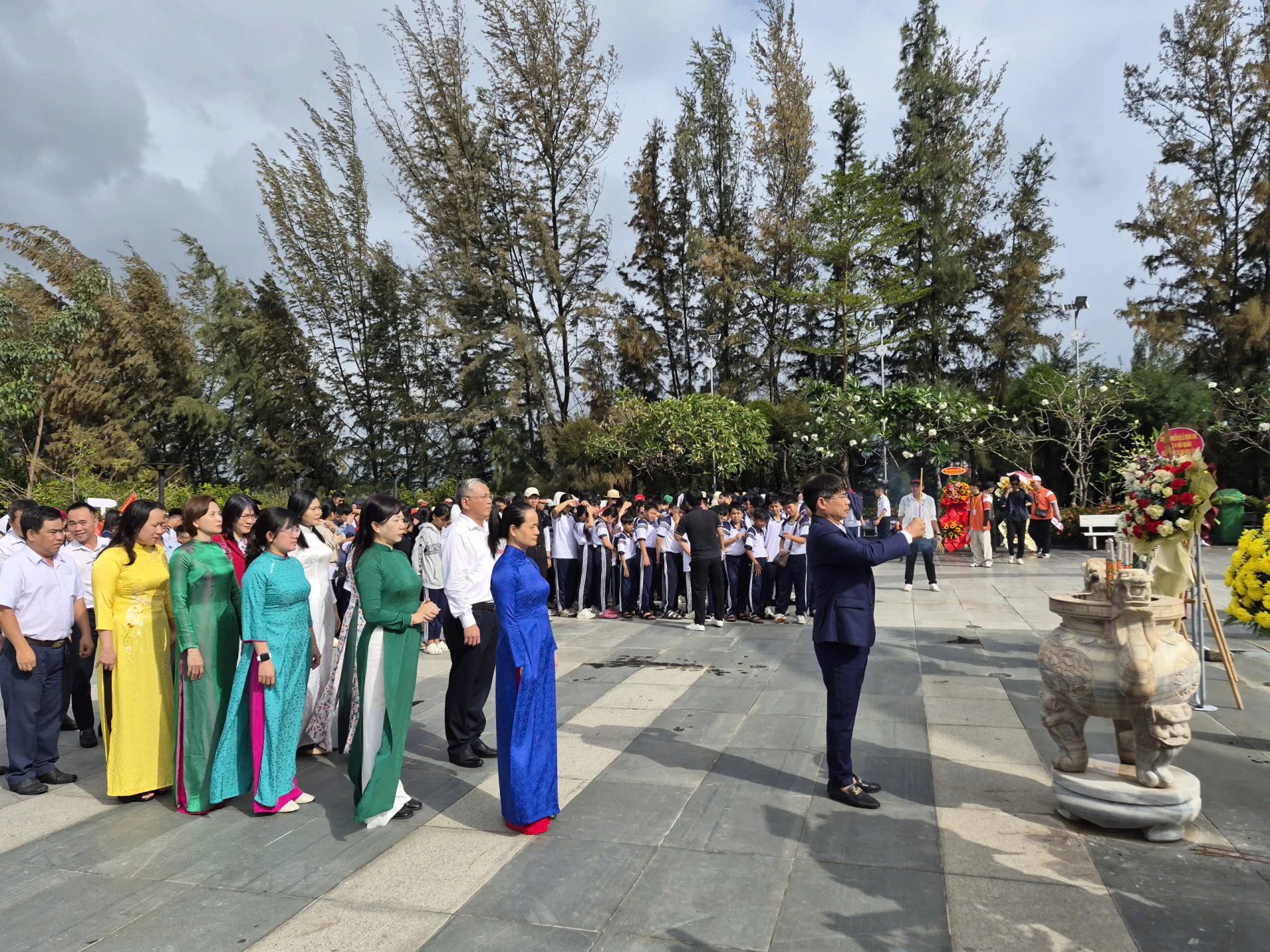 Tại đây, các đại biểu kính cẩn dâng hoa, dâng hương và dành một phút mặc niệm tưởng nhớ 64 anh hùng, liệt sĩ đã anh dũng hy sinh trong trận chiến bảo vệ chủ quyền tại cụm đảo Gạc Ma - Cô Lin - Len Đao thuộc quần đảo Trường Sa ngày 14-3-1988. Các đại biểu cũng thắp hương tại khu mộ gió, tham quan bảo tàng ngầm tại khu tưởng niệm.