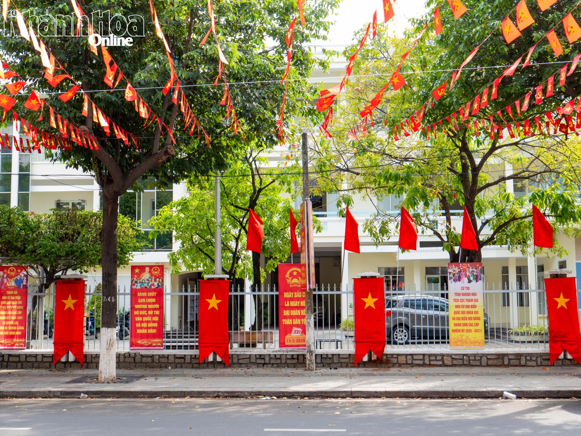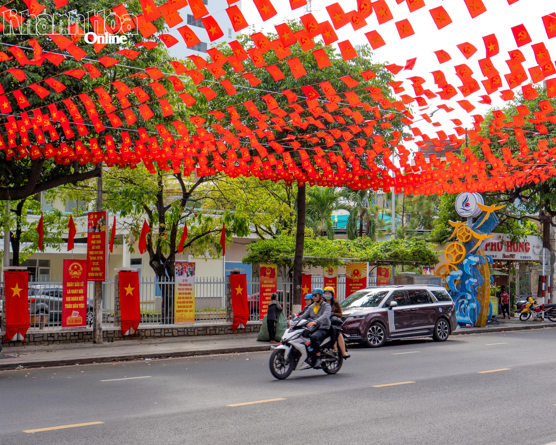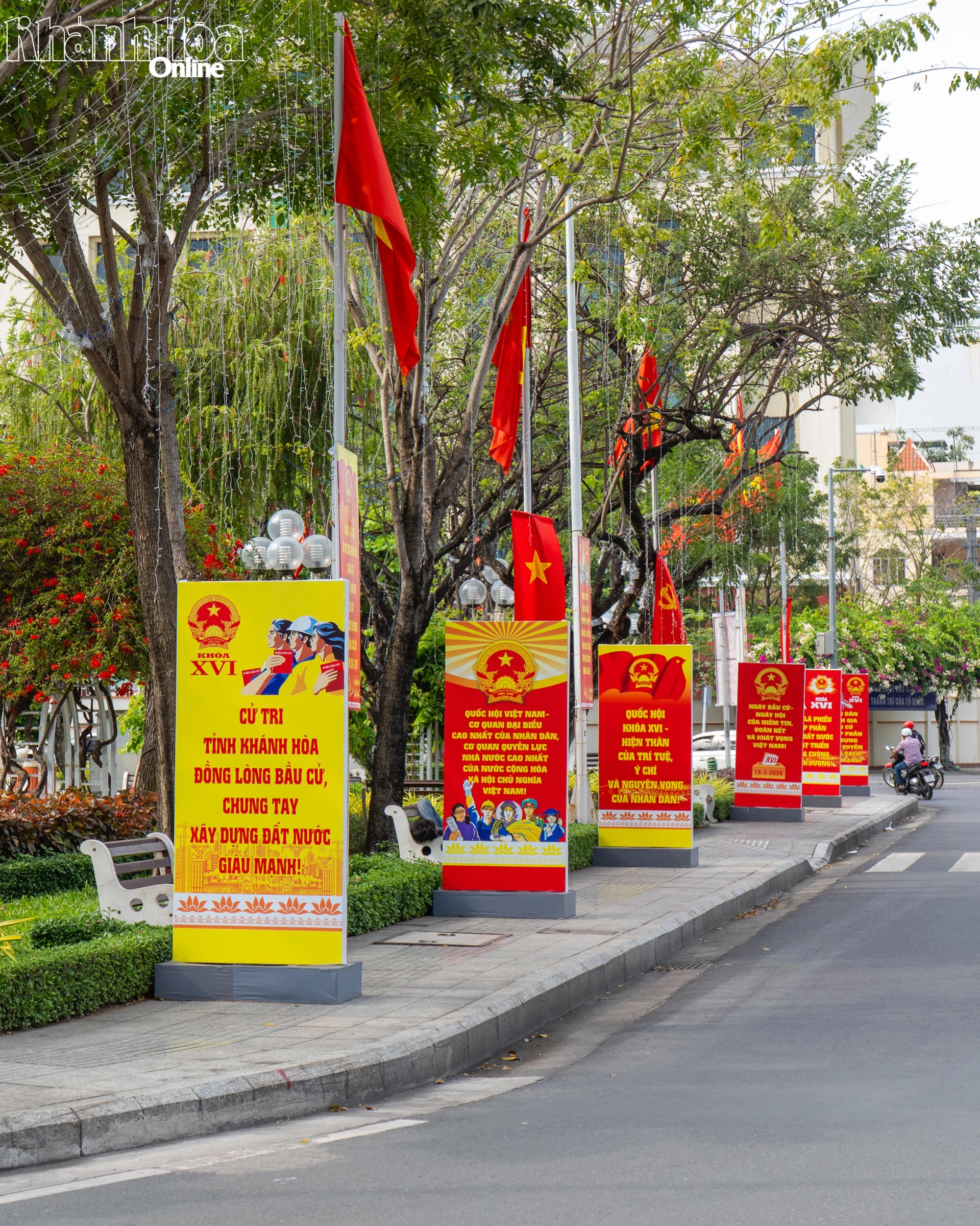 Những ngày này, khắp các ngõ phố, con đường trên địa bàn phường Nha Trang rực rỡ sắc đỏ của cờ Đảng, cờ Tổ quốc và các pa nô tuyên truyền chào đón ngày bầu cử đại biểu Quốc hội khóa XVI và đại biểu HĐND các cấp nhiệm kỳ 2026 - 2031.