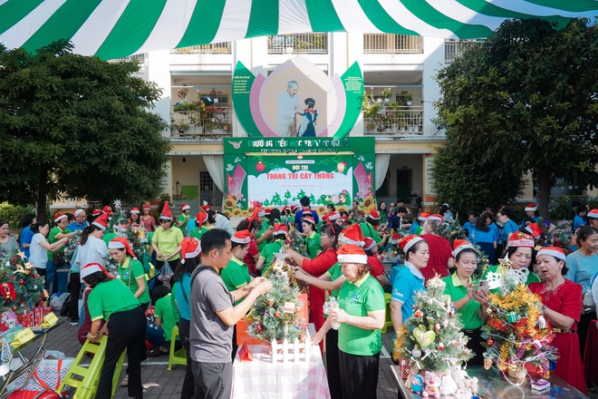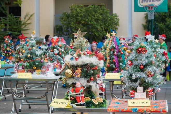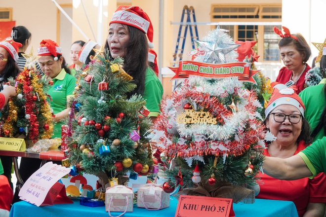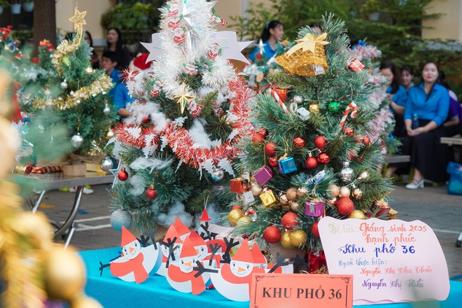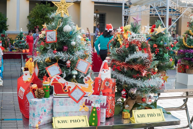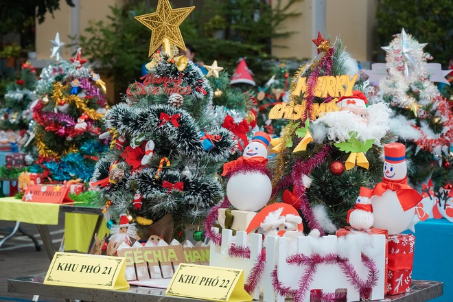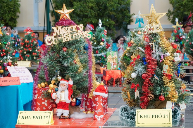 Hội thi năm nay thu hút đông đảo các đội thi đến từ các khu phố, các dòng tu và đơn vị trên địa bàn phường. Trong thời gian 60 phút, bằng những nguyên liệu như đèn led, ruy băng, phụ kiện trang trí… các đội đã khéo léo tạo nên những cây thông Noel rực rỡ.