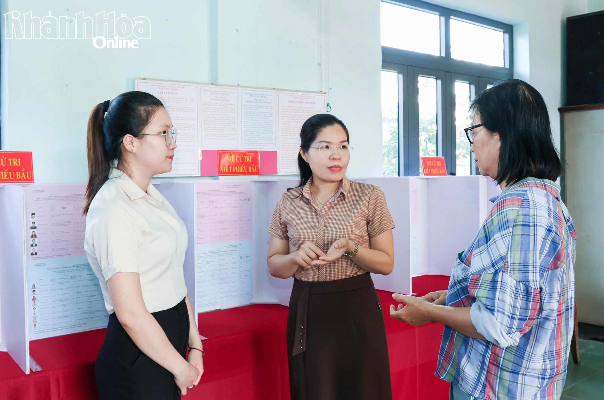 Lãnh đạo phường Ninh Hòa kiểm tra tại một khu vực bỏ phiếu trên địa bàn phường.