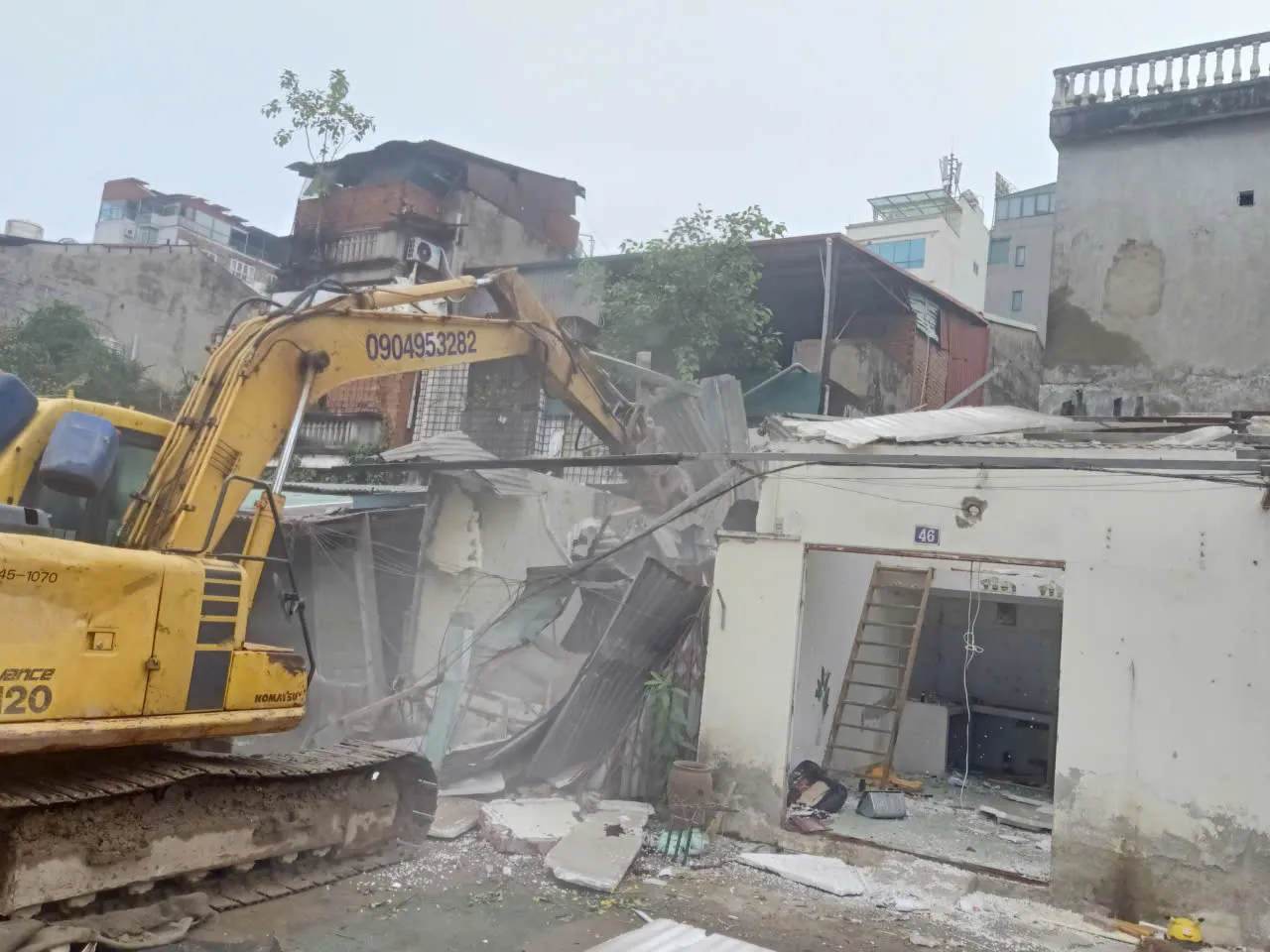 Lực lượng chức năng phường Ô Chợ Dừa thực hiện cưỡng chế đối với công trình Hợp tác xã Nông nghiệp Hoàng Cầu (do ông N.H.L đang sử dụng) tại số 48A – khu HTX Nông nghiệp Hoàng Cầu, ngõ 371 La Thành, diện tích 28,2m².