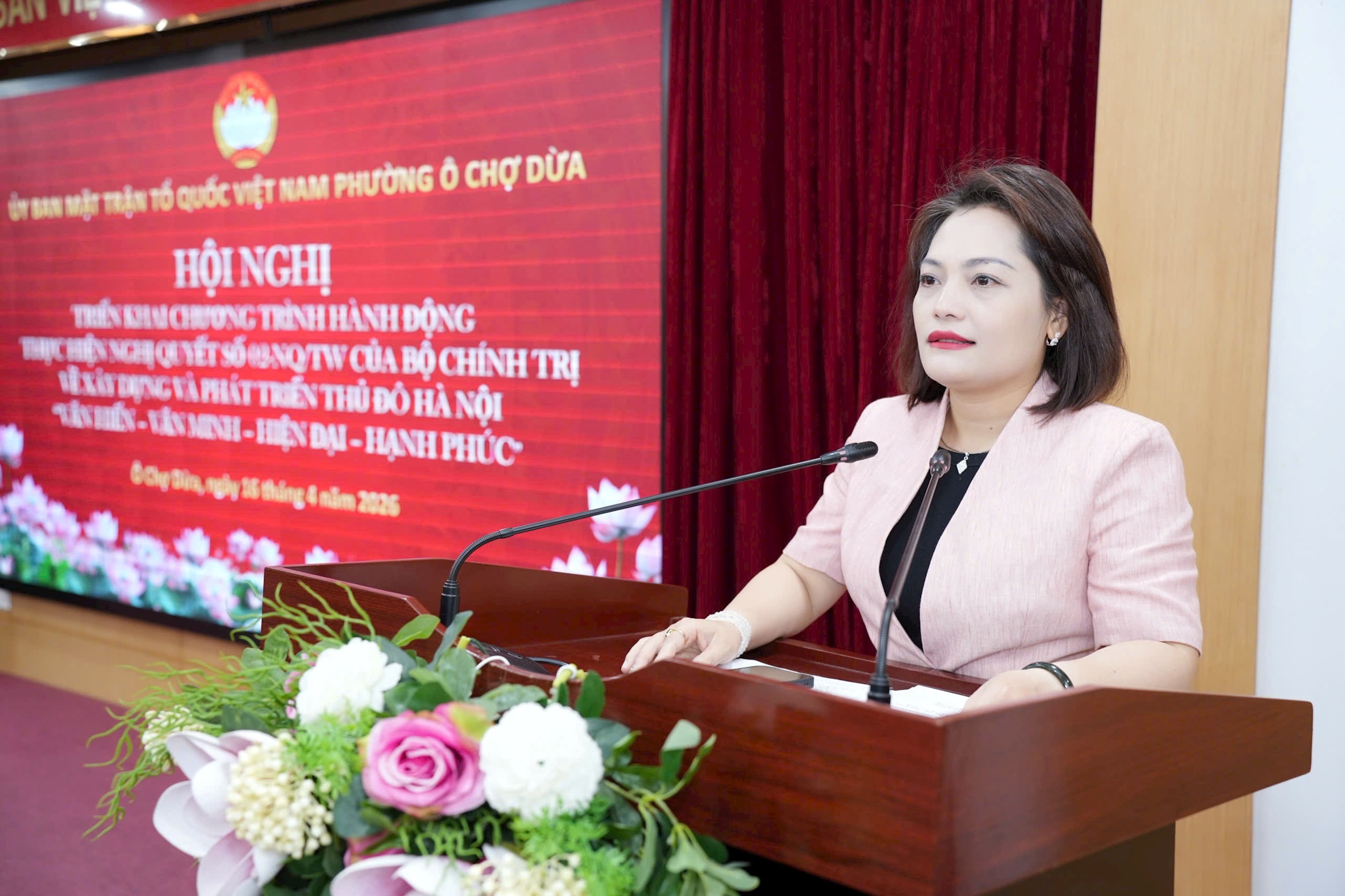 Sáng 16-4, Ủy ban MTTQ Việt Nam phường Ô Chợ Dừa tổ chức hội nghị triển khai chương trình hành động thực hiện Nghị quyết số 02-NQ/TW của Bộ Chính trị về xây dựng và phát triển Thủ đô Hà Nội “Văn hiến - Văn minh - Hiện đại - Hạnh phúc”; kiện toàn Ủy viên Ủy ban MTTQ Việt Nam phường nhiệm kỳ 2025-2030; tổng kết, biểu dương, khen thưởng công tác bầu cử đại biểu Quốc hội khóa XVI và đại biểu HĐND các cấp nhiệm kỳ 2026-2031.