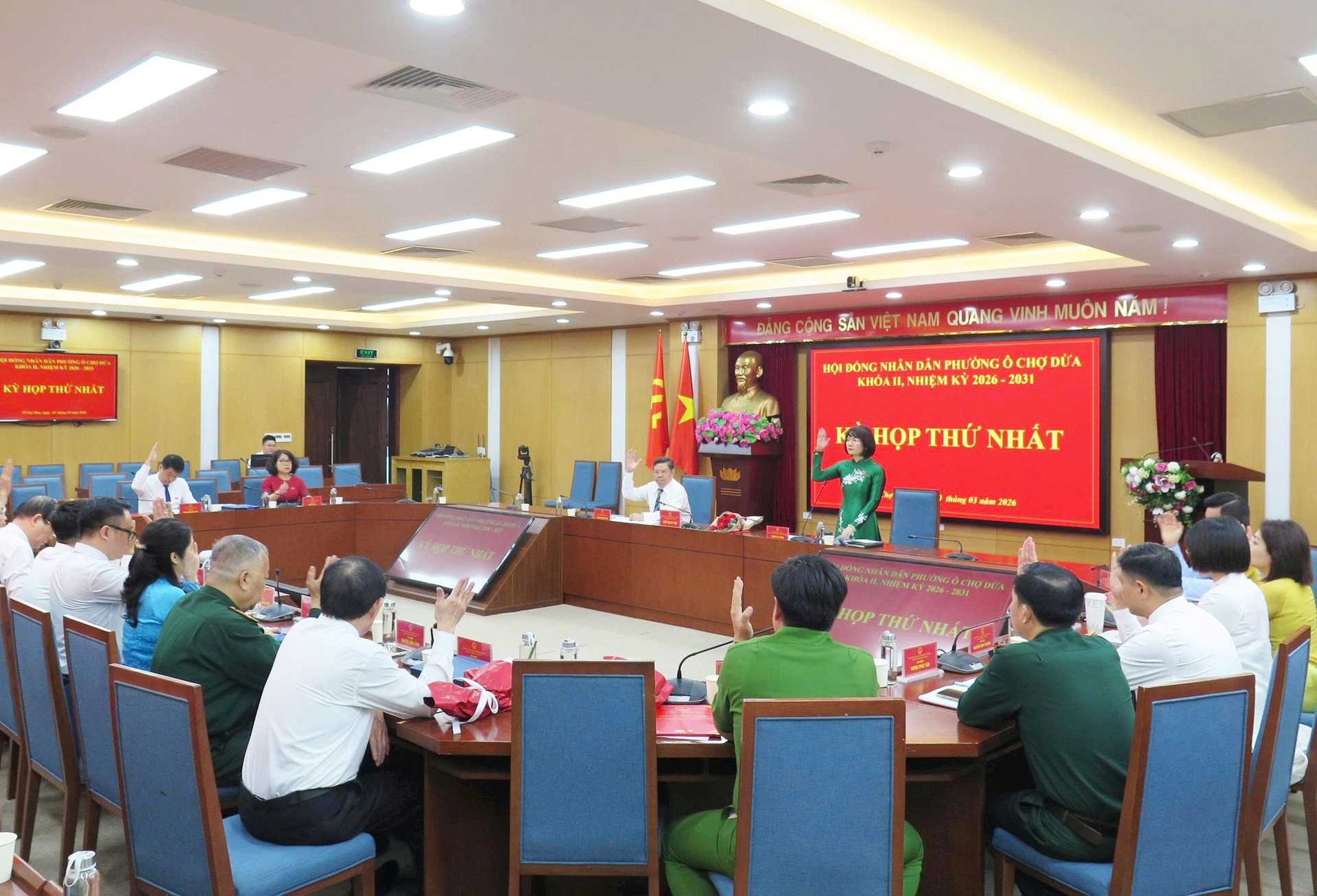 Tại kỳ họp, HĐND phường Ô Chợ Dừa đã triển khai các quy trình nhân sự chặt chẽ, đúng quy định của Luật Tổ chức chính quyền địa phương. Với tinh thần dân chủ, trách nhiệm, 100% đại biểu HĐND phường tham dự đã thống nhất cao bầu các chức danh chủ chốt.