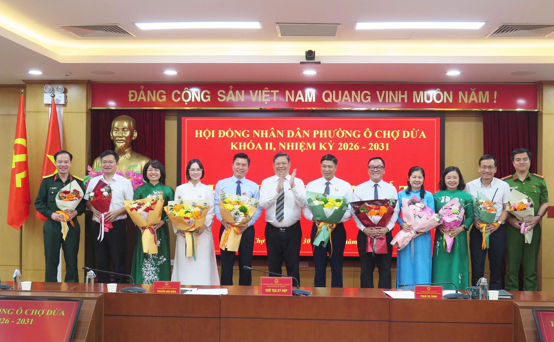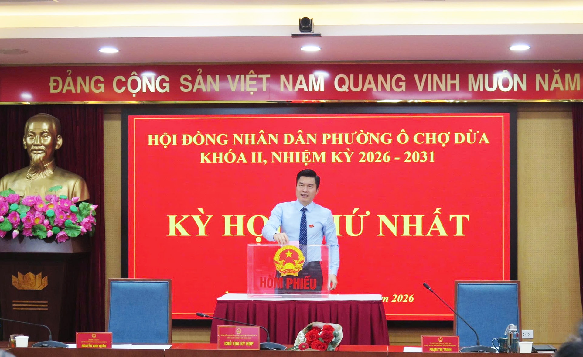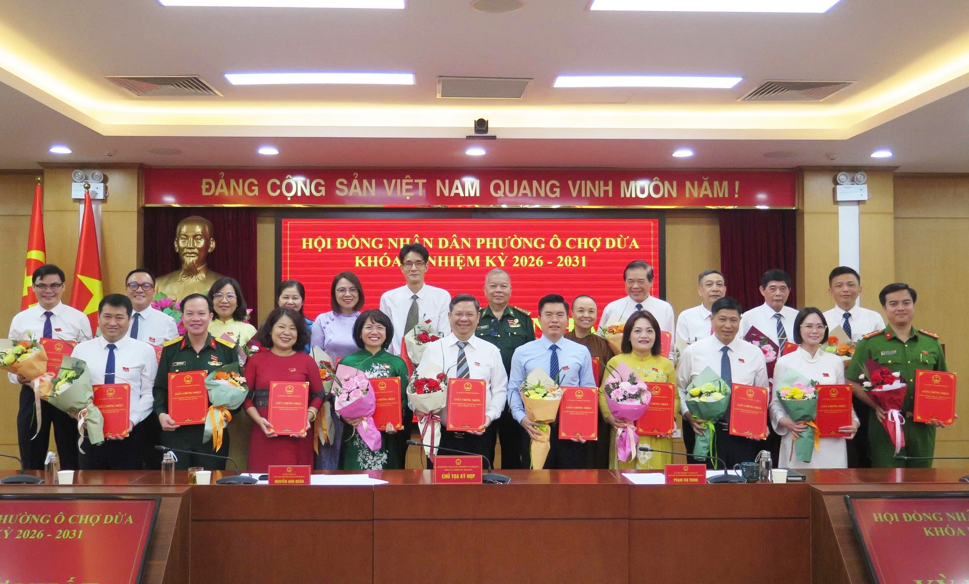 Cụ thể, đồng chí Nguyễn Anh Quân, Bí thư Đảng ủy, Chủ tịch HĐND phường nhiệm kỳ 2021-2026, tiếp tục được bầu giữ chức Chủ tịch HĐND phường Ô Chợ Dừa nhiệm kỳ 2026-2031; đồng chí Lê Tuấn Định, Phó Bí thư Đảng ủy, Chủ tịch UBND phường nhiệm kỳ 2021-2026, tiếp tục được bầu giữ chức Chủ tịch UBND phường nhiệm kỳ 2026-2031.