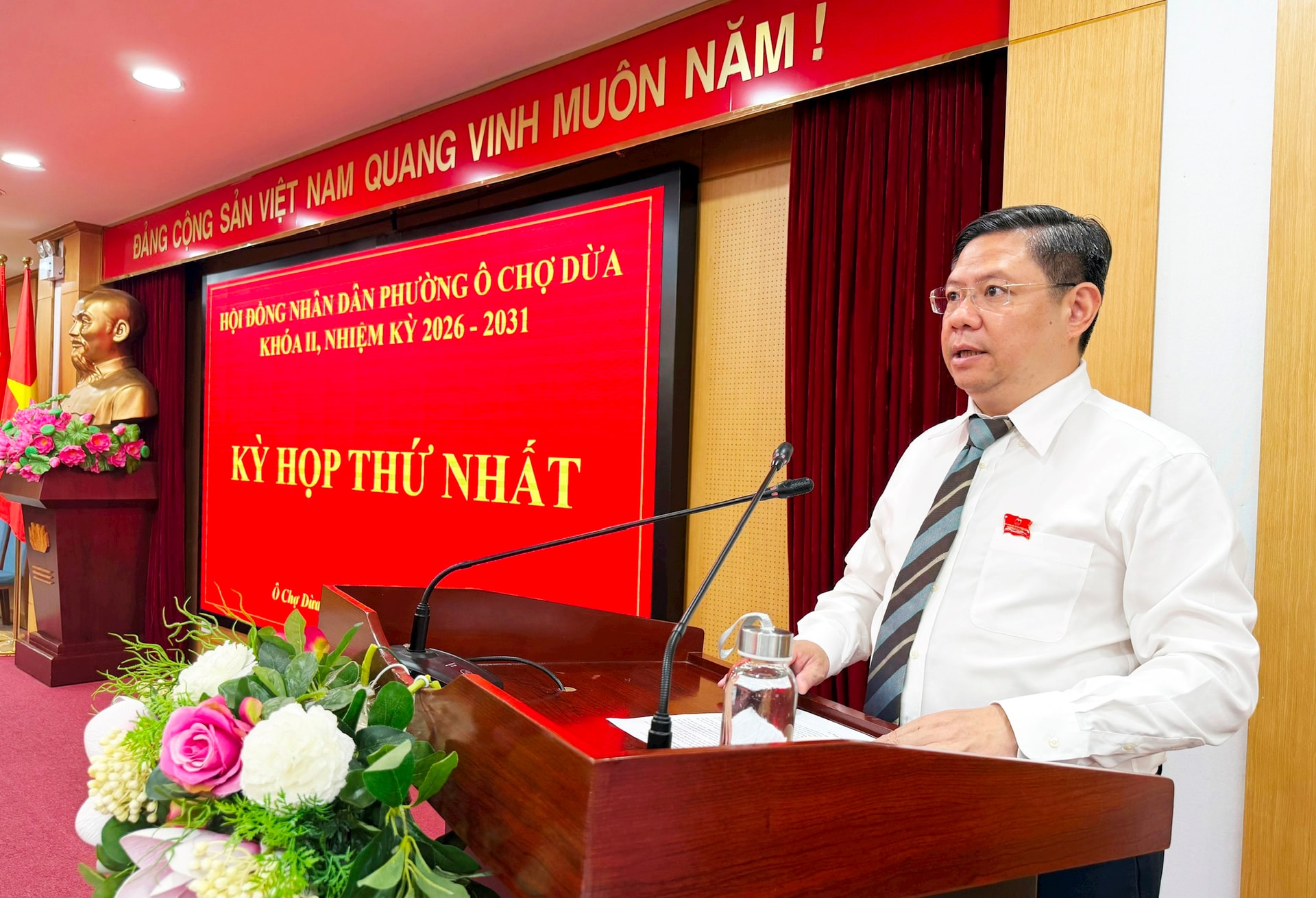 Với tinh thần trách nhiệm trước Đảng bộ, chính quyền và nhân dân, Bí thư Đảng ủy, Chủ tịch HĐND phường Nguyễn Anh Quân bày tỏ tin tưởng, HĐND phường Ô Chợ Dừa nhiệm kỳ 2026-2031 sẽ tiếp tục phát huy tinh thần đoàn kết, trách nhiệm, đổi mới phương thức hoạt động, góp phần xây dựng chính quyền cơ sở ngày càng gần dân, sát dân, phục vụ nhân dân tốt hơn…