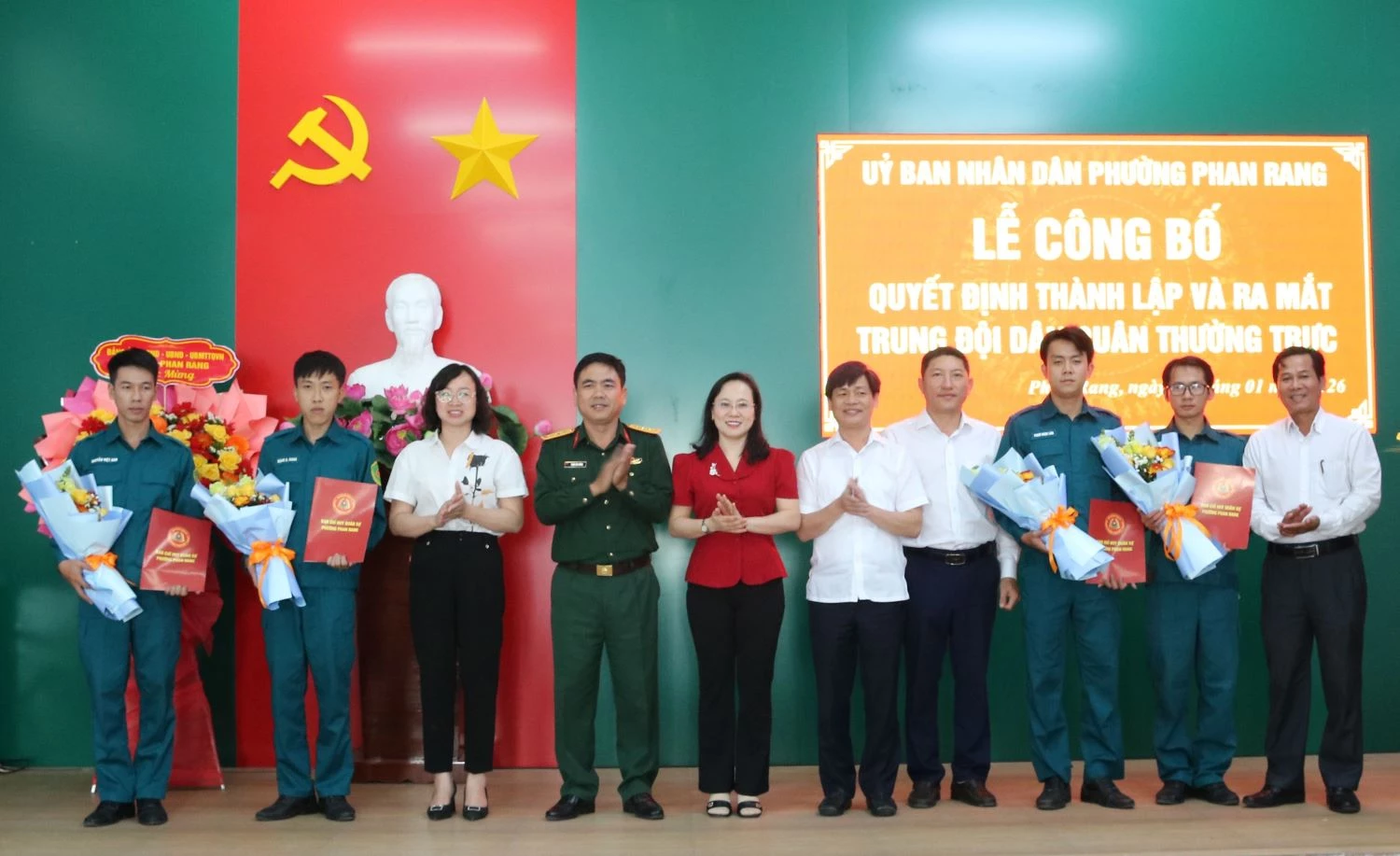 Chiều 23-1, UBND phường Phan Rang tổ chức lễ công bố quyết định thành lập và ra mắt Trung đội Dân quân thường trực thuộc Ban Chỉ huy Quân sự phường.