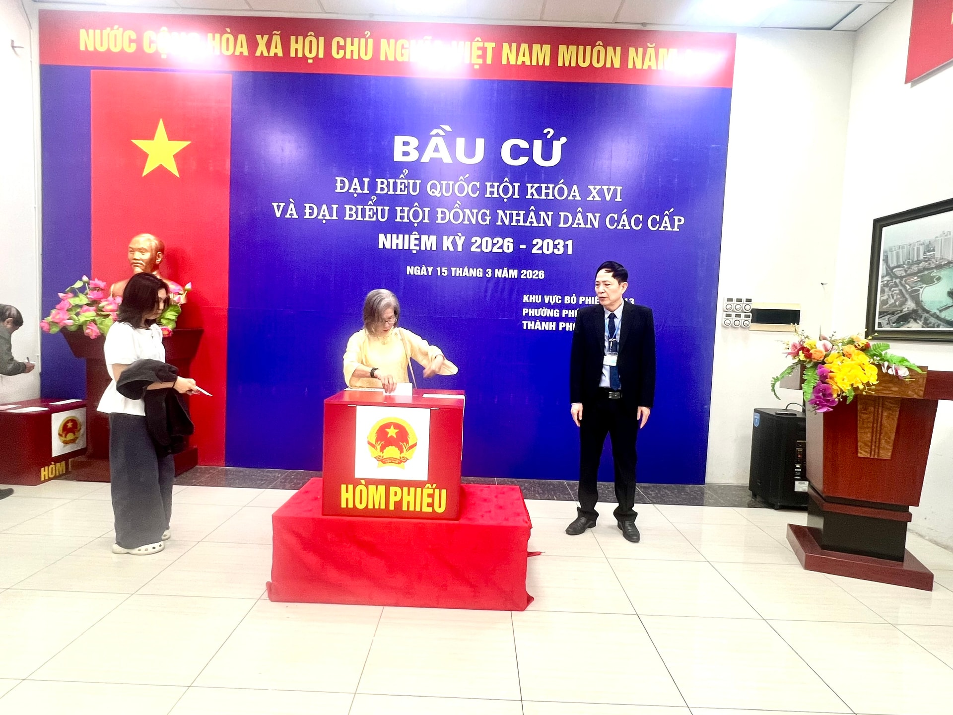 Cử tri phường Phú Diễn tham gia bỏ phiếu cầu cử đại biểu Quốc hội và đại biểu HĐND các cấp diễn ra ngày 15-3-2026. Ảnh: Vũ Du