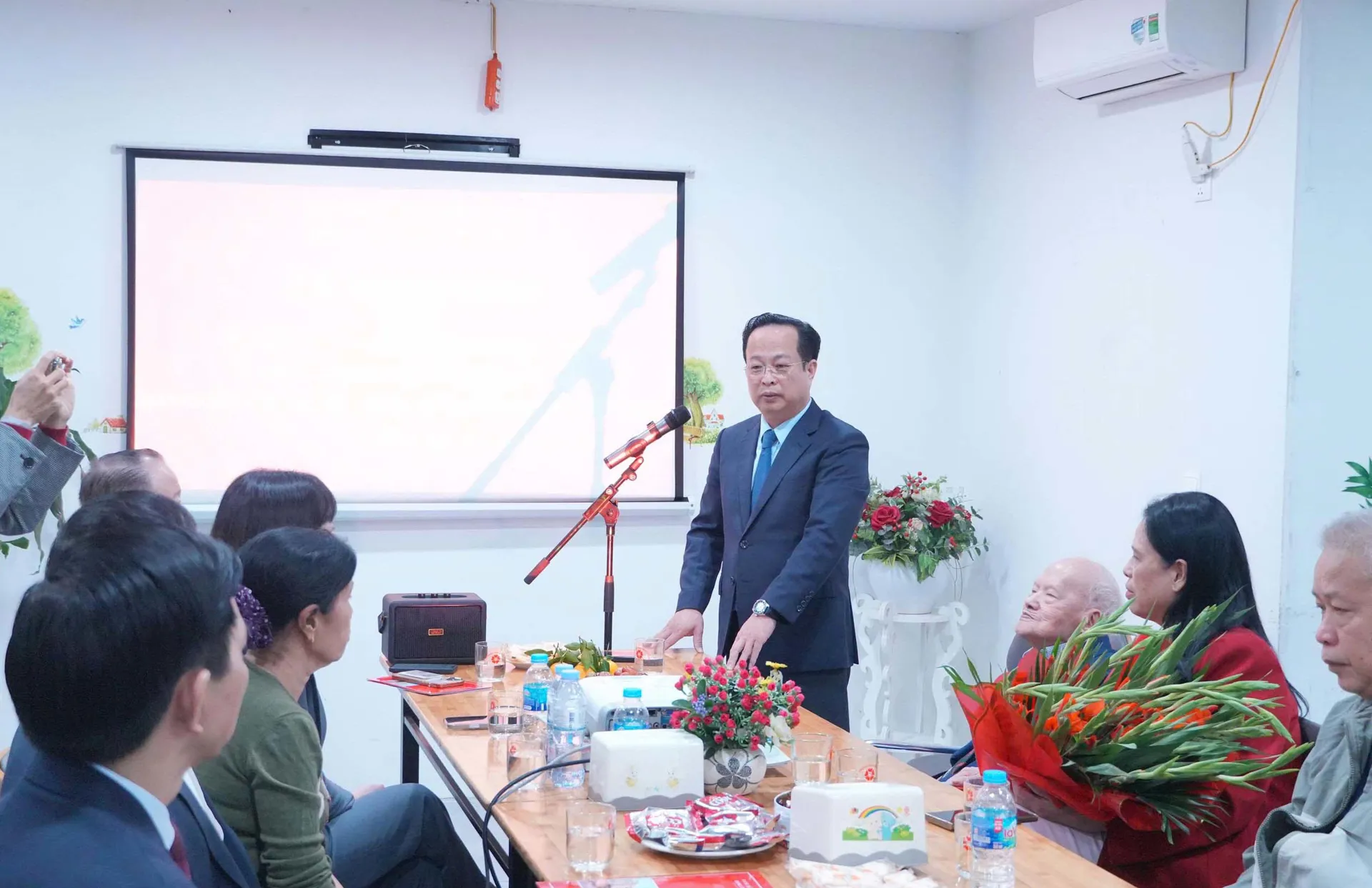 Giám đốc Sở GD&ĐT Hà Nội Trần Thế Cương cùng Bí thư Đảng ủy phường Phú Diễn Nguyễn Lê Hoàng, Phó Bí thư Thường trực Đảng ủy phường Hoàng Thị Thủy chúc mừng nhà giáo, đảng viên Nguyễn Trúc vinh dự nhận Huy hiệu 80 năm tuổi Đảng đợt 7/11
