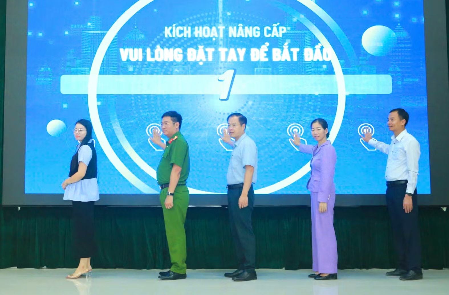Các đại biểu bấm nút vận hành hệ thống nâng cấp camera an ninh giám sát. Ảnh: Hữu Tiệp