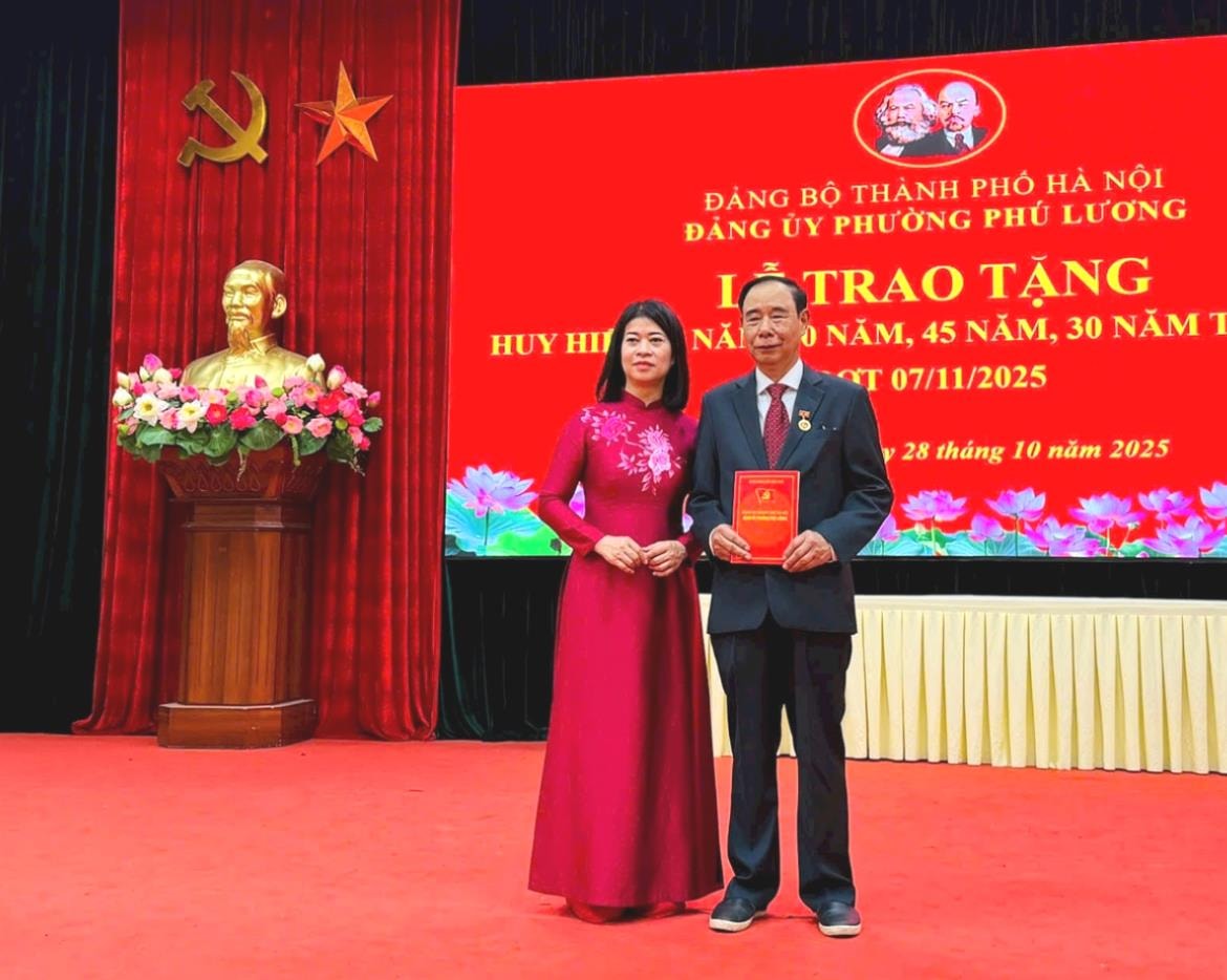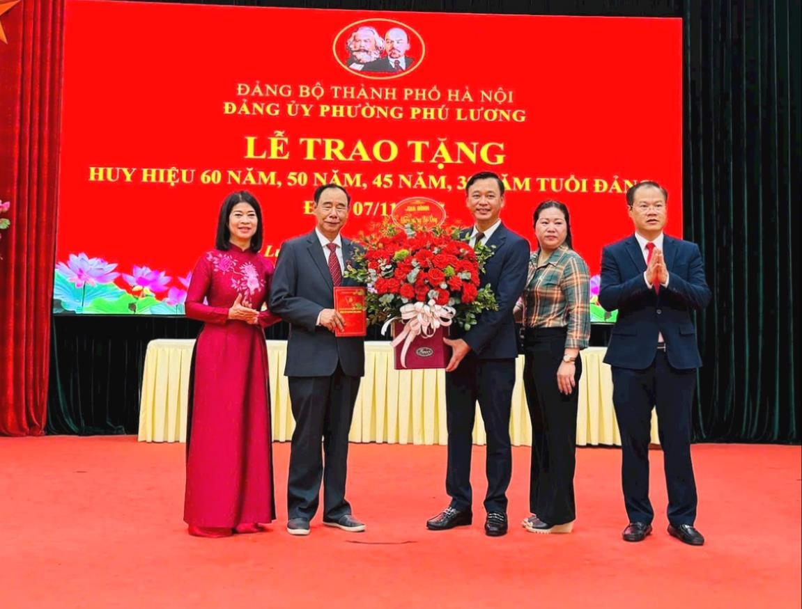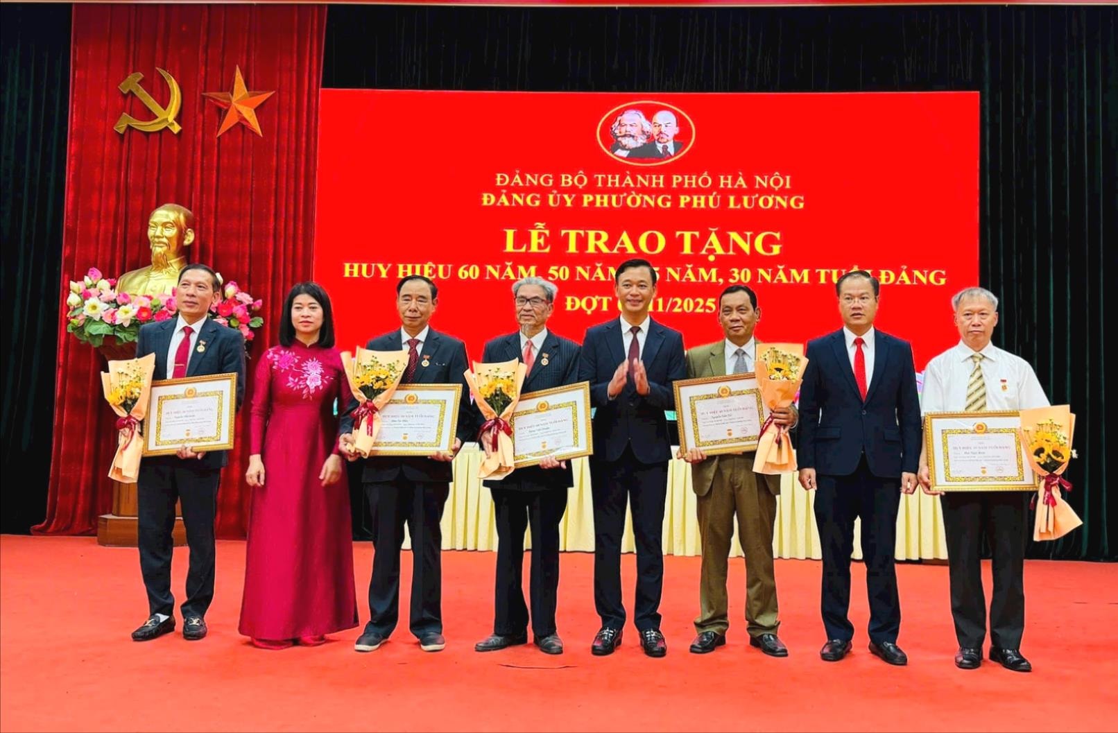 Theo đó, đợt này, Ban Thường vụ Thành ủy Hà Nội tặng Huy hiệu Đảng với 6 đảng viên thuộc Đảng bộ phường Phú Lương. Trong đó, Huy hiệu 60 năm tuổi Đảng tặng đồng chí Đặng Văn Thuận; Huy hiệu 50 năm tuổi Đảng tặng đồng chí Đào Tự Mão...