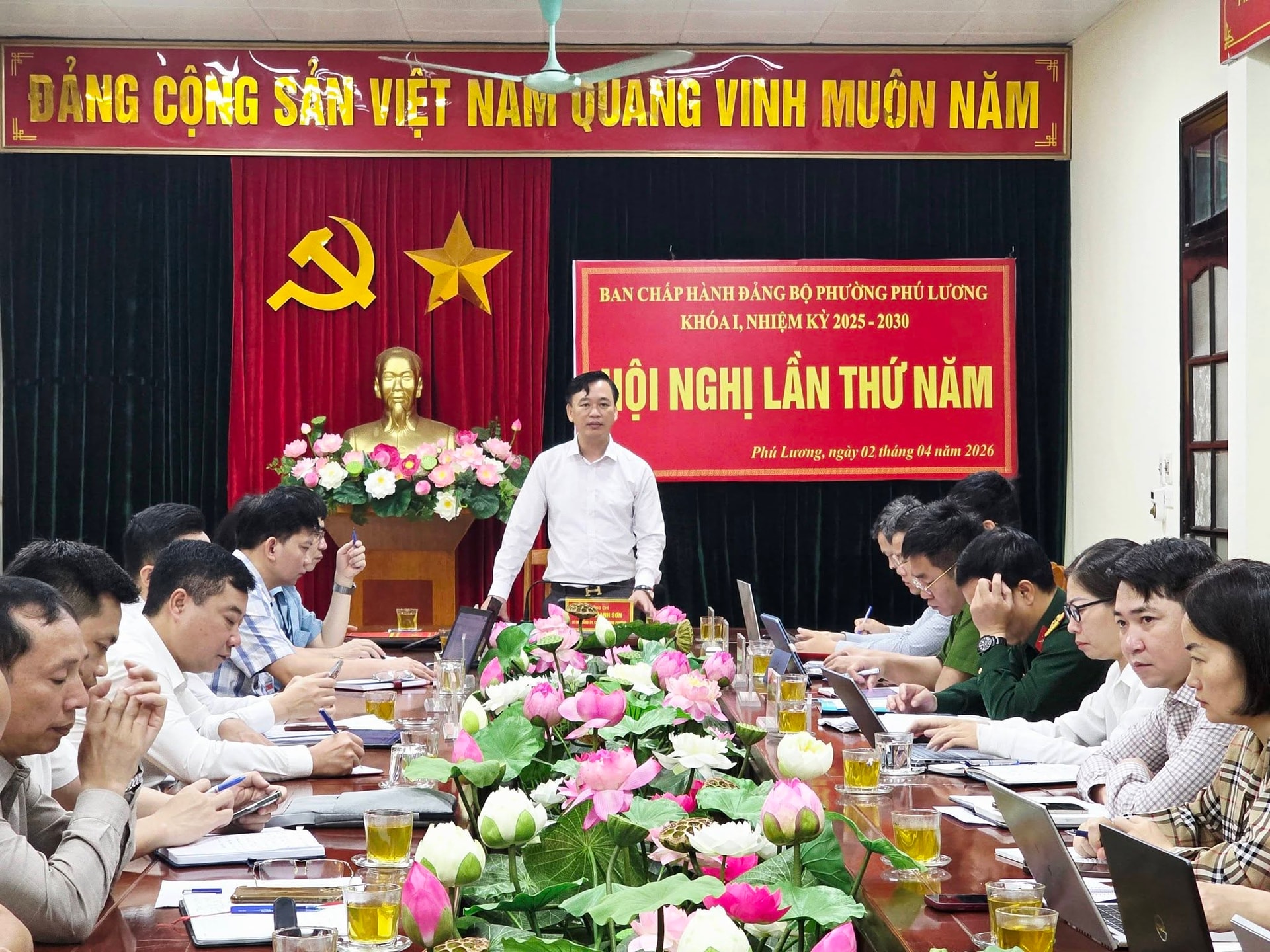 Phát biểu kết luận hội nghị, Bí thư Đảng ủy phường Phú Lương Lương Mạnh Sơn nhấn mạnh một số nhiệm vụ trọng tâm 9 tháng cuối năm 2026. Trong đó, Đảng bộ phường thực hiện nghiêm Chỉ thị 24 và Chỉ thị 09 của Ban Thường vụ Thành ủy Hà Nội; tăng thu ngân sách, giải ngân vốn đầu tư công; quyết liệt công tác giải phóng mặt bằng; tăng cường quản lý đô thị, đất đai, môi trường; phát triển văn hóa - xã hội, nâng cao đời sống nhân dân.