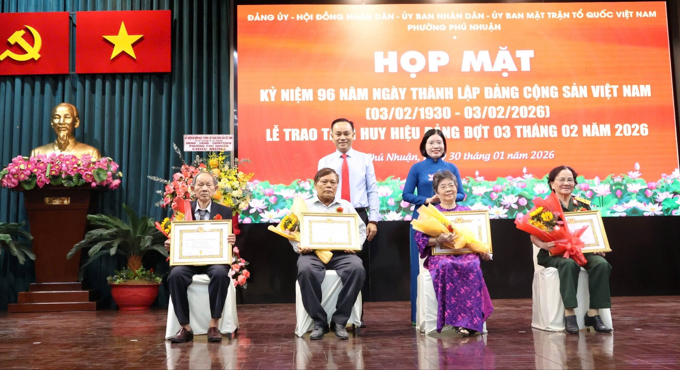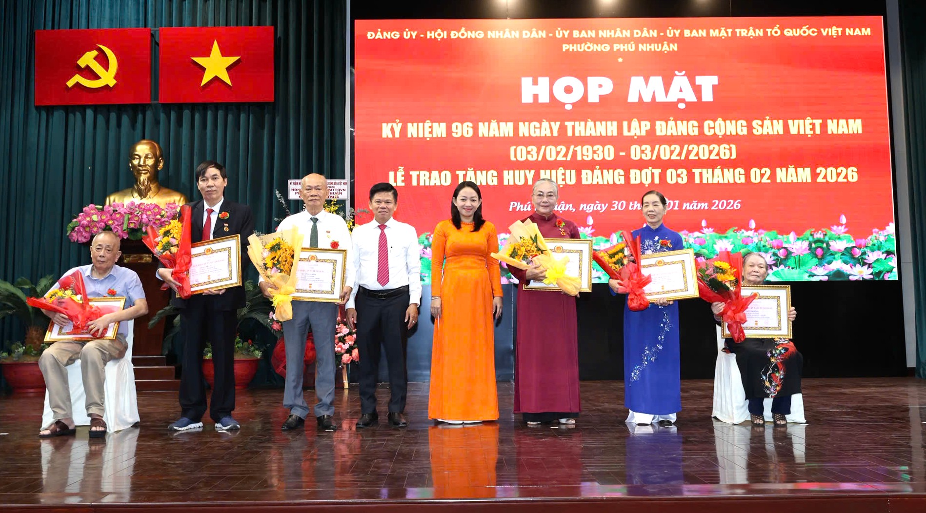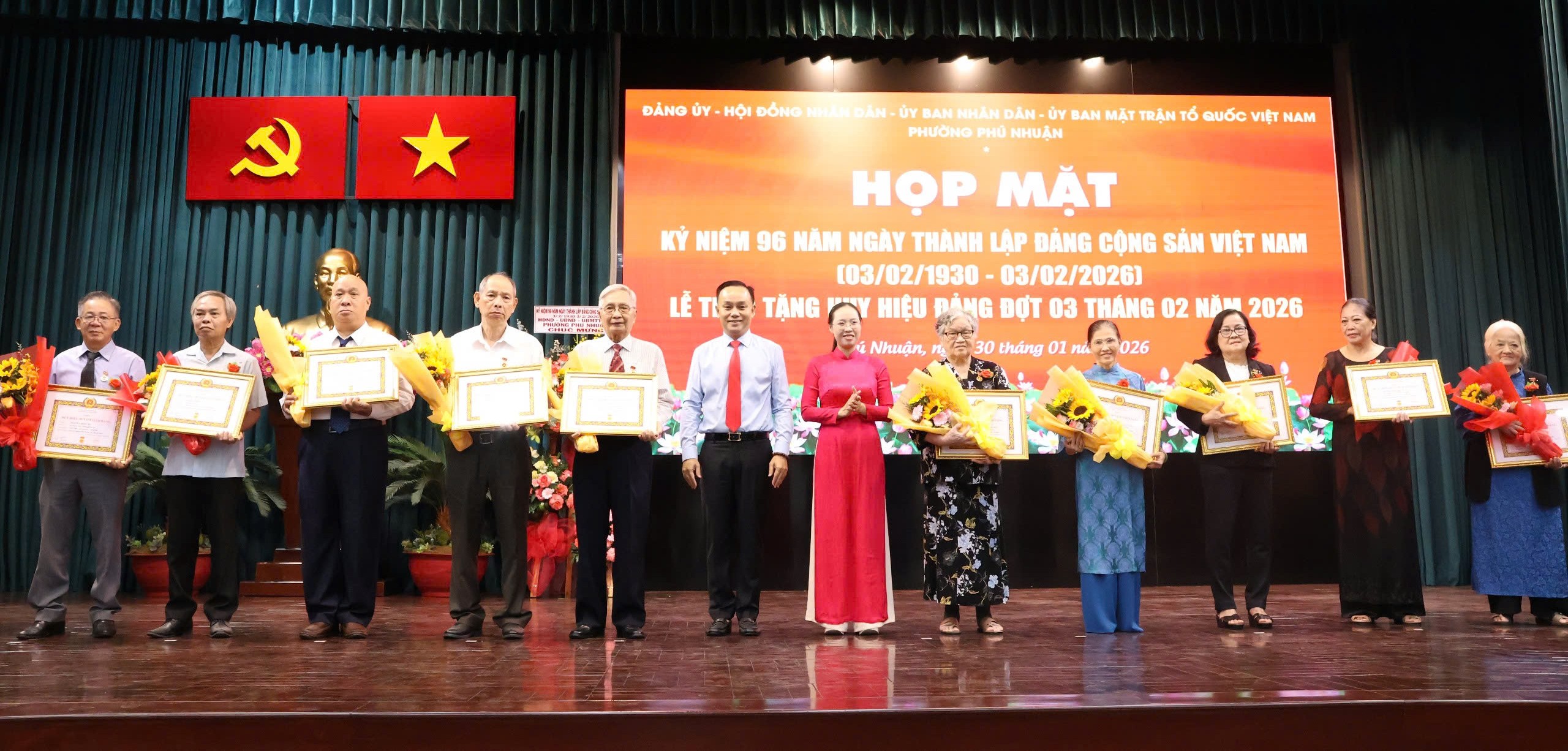 Đợt này, phường Phú Nhuận có 36 đảng viên được nhận Huy hiệu Đảng 70, 60, 55, 50, 45, 40 và 30 năm tuổi Đảng.