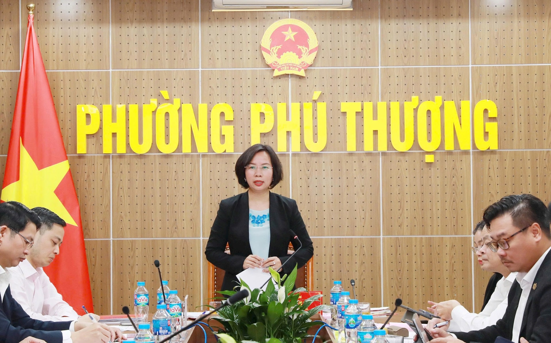 Phát biểu kết luận buổi làm việc, đồng chí Bùi Huyền Mai, Chủ tịch Ủy ban MTTQ Việt Nam thành phố ghi nhận, đánh giá cao công tác chuẩn bị báo cáo nghiêm túc, khoa học của Ban Thường vụ Đảng ủy phường Phú Thượng, đặc biệt là mô hình xây dựng phường điểm về công nghệ thông tin, ứng dụng công nghệ thông tin và chuyển đổi số.