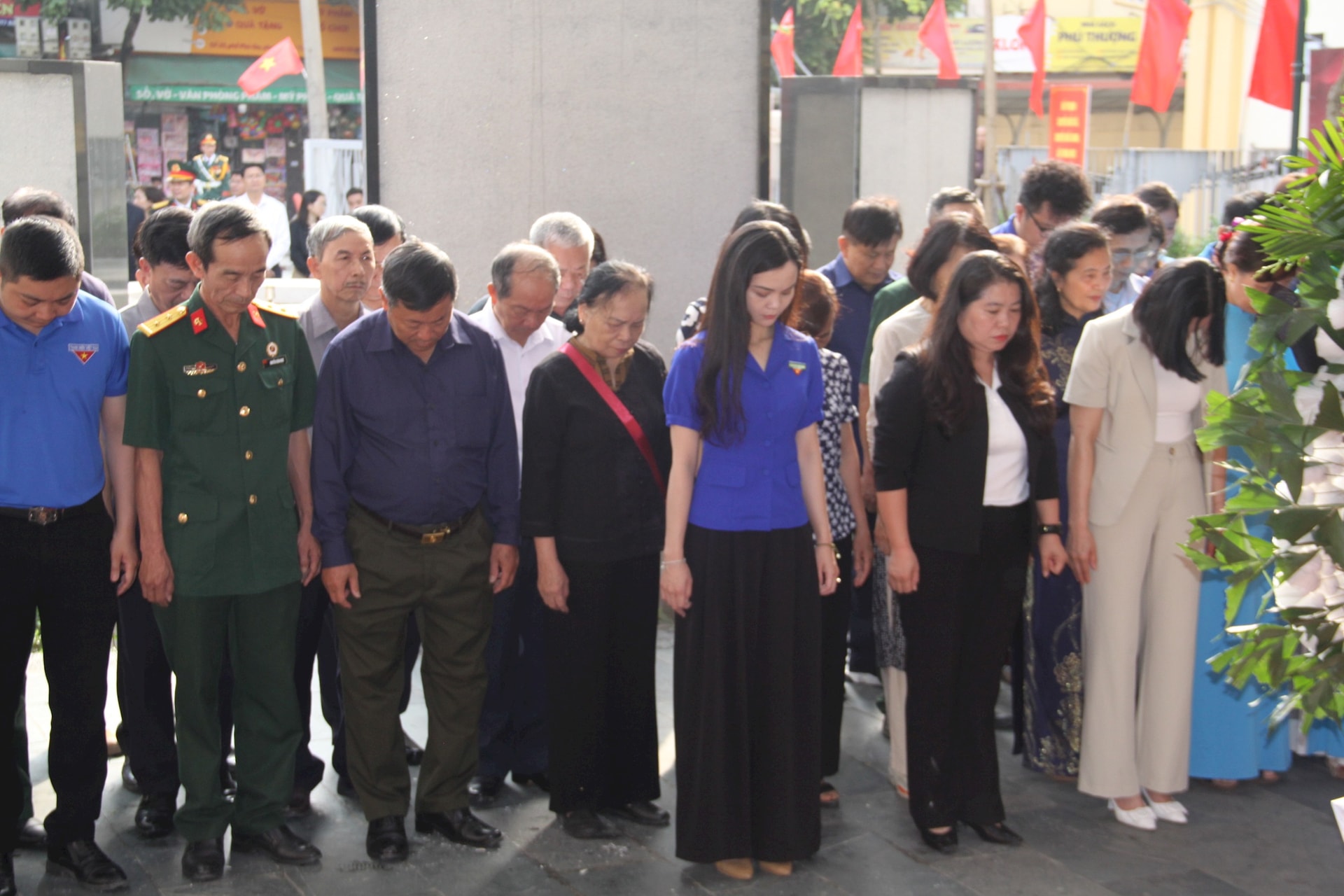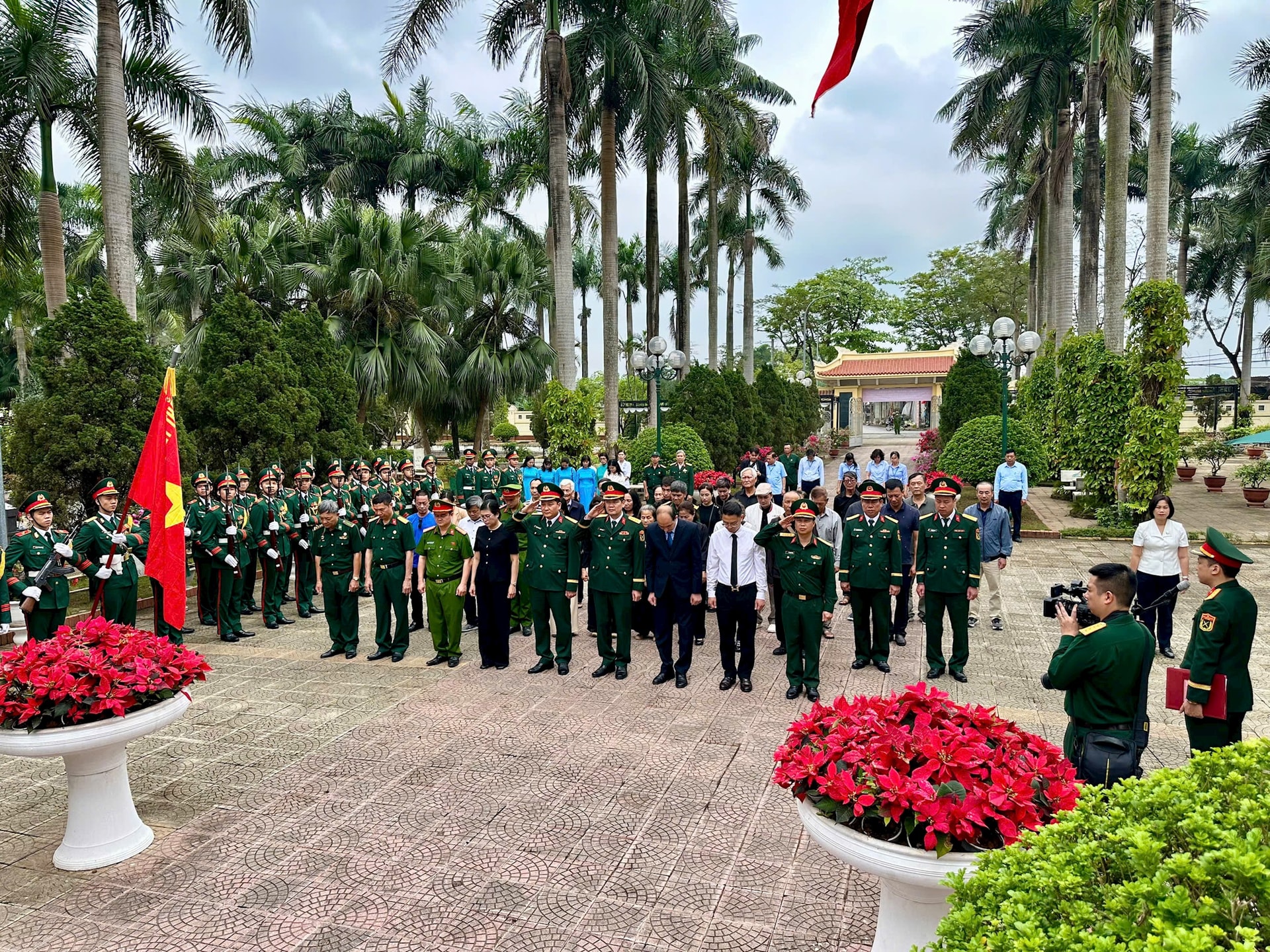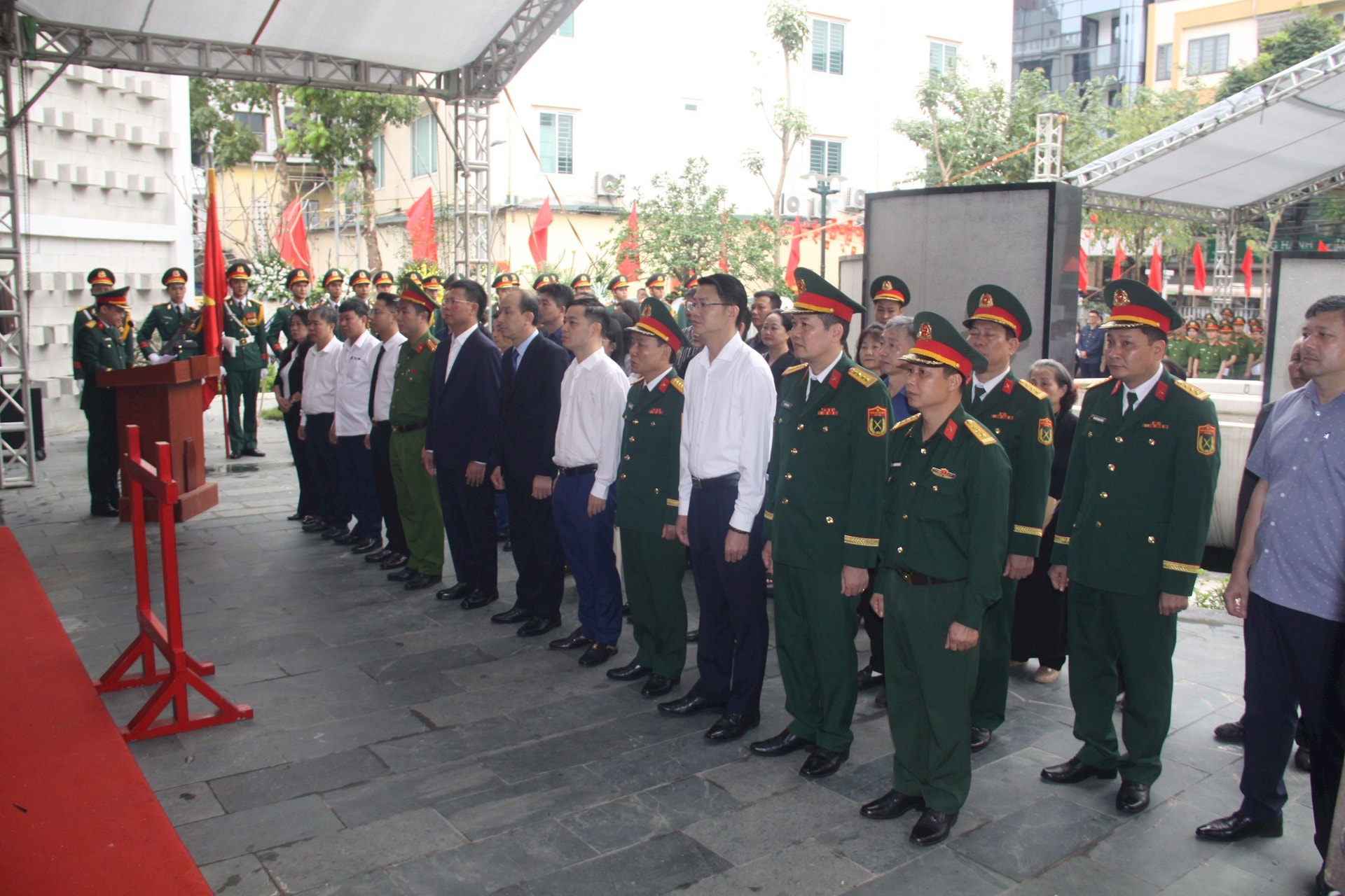 Lãnh đạo và đại biểu tham dự lễ truy điệu Liệt sĩ Phạm Đức Bình. Ảnh: CK