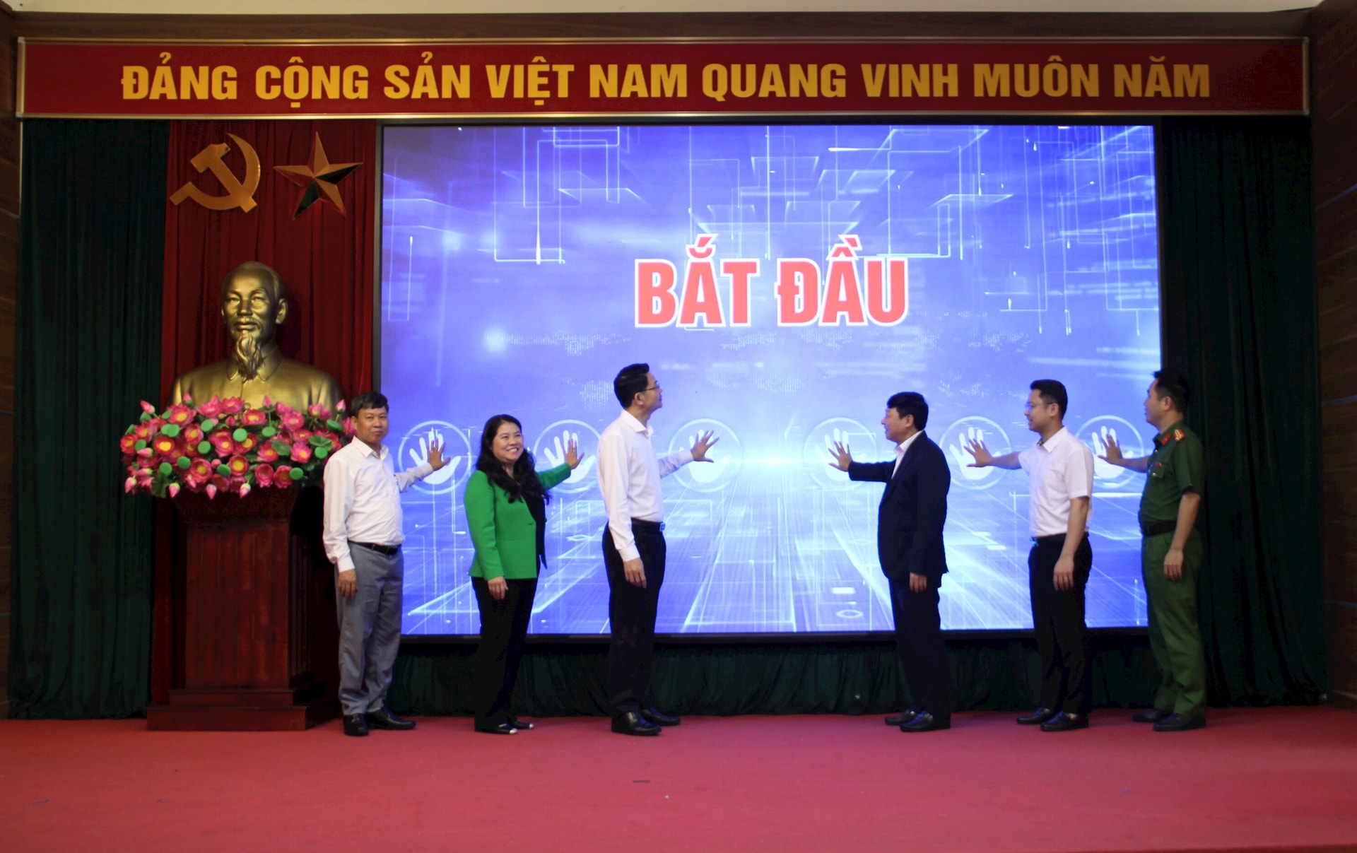 Các đại biểu thực hiện nghi thức bấm nút khởi động phong trào. Ảnh: C.K