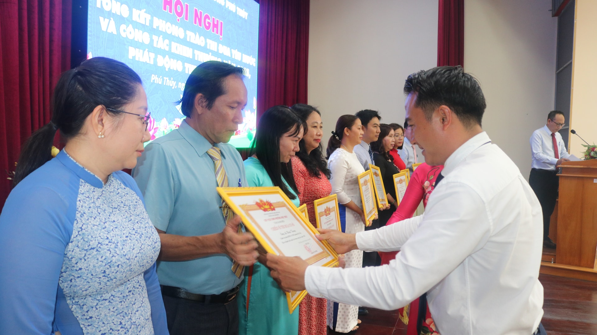 Nhân dịp này, thừa ủy quyền của lãnh đạo tỉnh, các lãnh đạo phường Phú Thủy đã trao tặng danh hiệu “Tập thể lao động xuất sắc” và bằng khen của Chủ tịch UBND tỉnh cho 2 tập thể (Ủy ban MTTQ Việt Nam phường, Trung tâm phục vụ hành chính công phường); trao tặng Bằng khen của Chủ tịch UBND tỉnh cho 4 tập thể và 9 cá nhân khác.