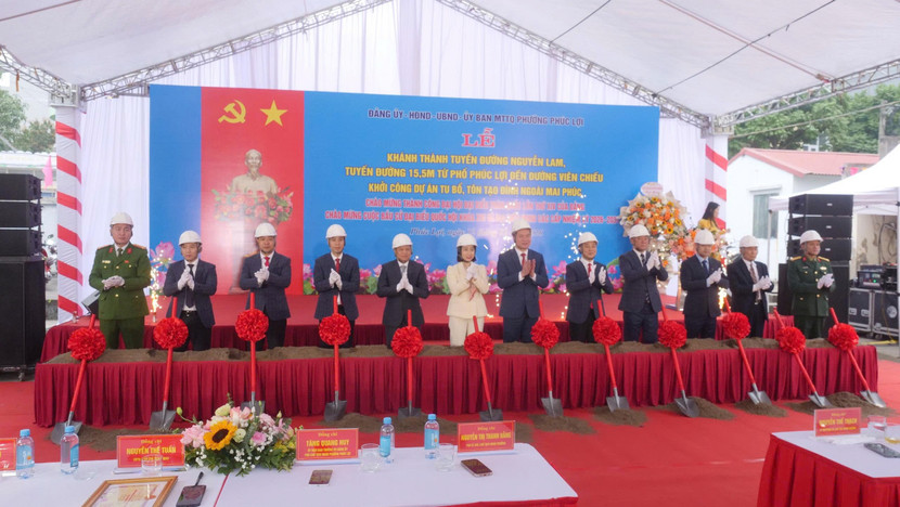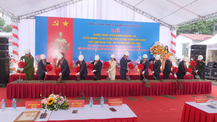 Lãnh đạo UBND phường Phúc Lợi thực hiện nghi thức khởi công...