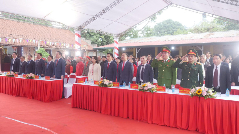 Các đại biểu dự lễ Khởi công dự án "Tu bổ, tôn tạo di tích lịch sử đình Ngoài Mai Phúc"