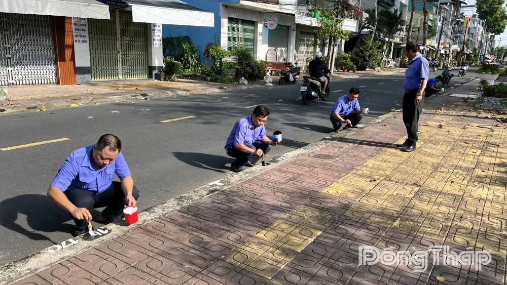 Lực lượng Quản lý chợ Sa Đéc tiến hành kẻ phân lô chợ Tết Nguyên đán năm 2026.