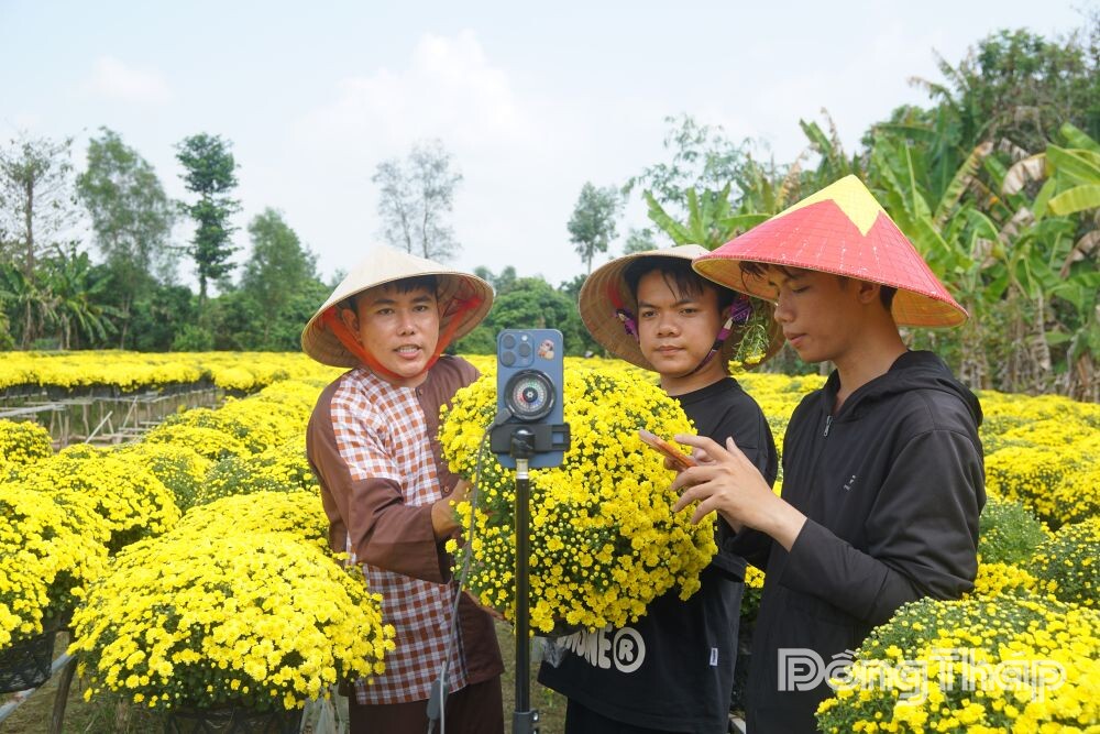 TikToker Thiện Nhân cùng các cộng sự thực hiện phiên livestream ngay tại vườn hoa. Trong hơn 4 giờ đồng hồ (từ 11 giờ đến 15 giờ 30 phút), khoảng 1.600 chậu cúc đã được khách hàng khắp nơi đặt mua.