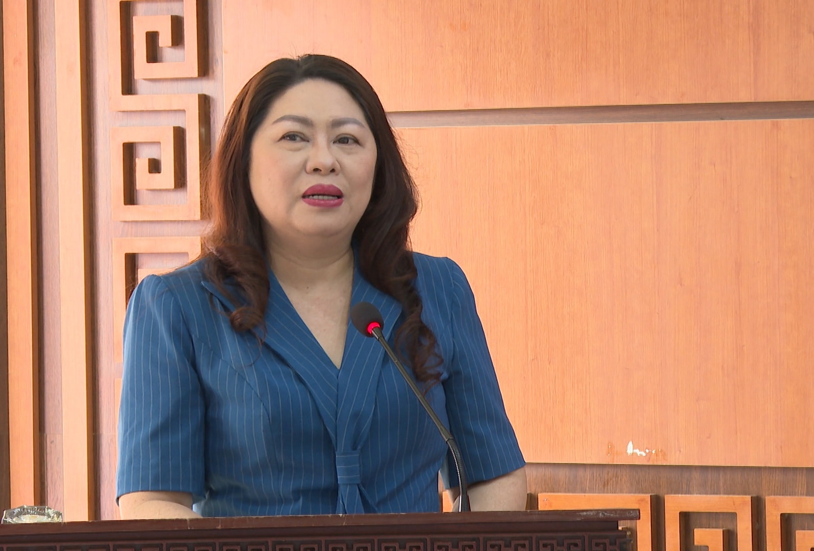 Bí thư Đảng ủy, Chủ tịch HĐND phường Tam Kỳ Nguyễn Thị Thu Lan phát biểu tại hội nghị. Ảnh: QUỐC THÀNH