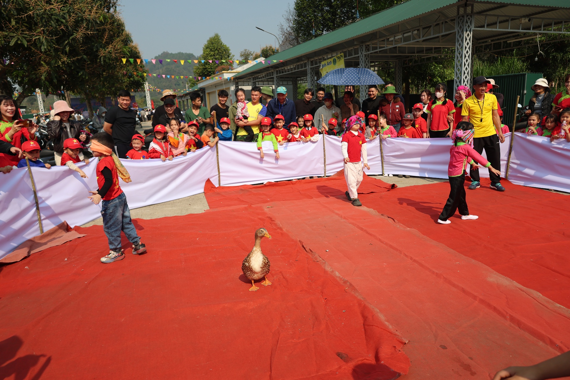 Cô trò Trường Mầm non San Thàng và người dân trải nghiệm các hoạt động tại lễ hội.