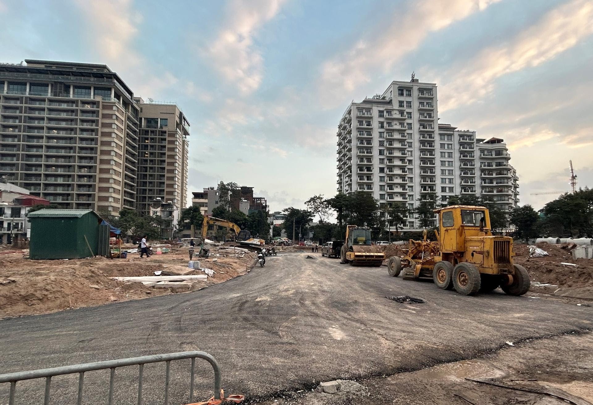 Không khí thi công khẩn trương của các nhà thầu ngay sau khi tiếp nhận mặt bằng triển khai dự án đường Đặng Thai Mai. Ảnh: PV