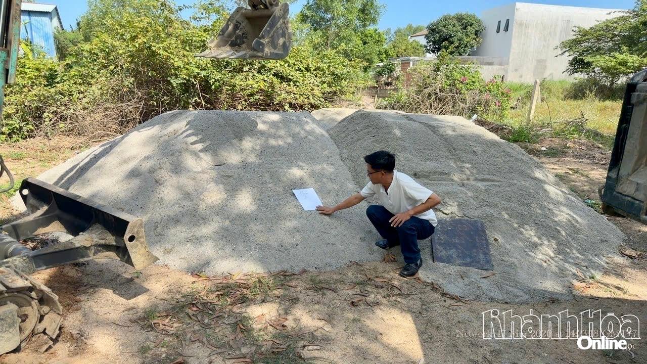 Lực lượng chức năng phường Tây Nha Trang kiểm tra, xử lý điểm tập kết cát trái phép. (ảnh do địa phương cung cấp).