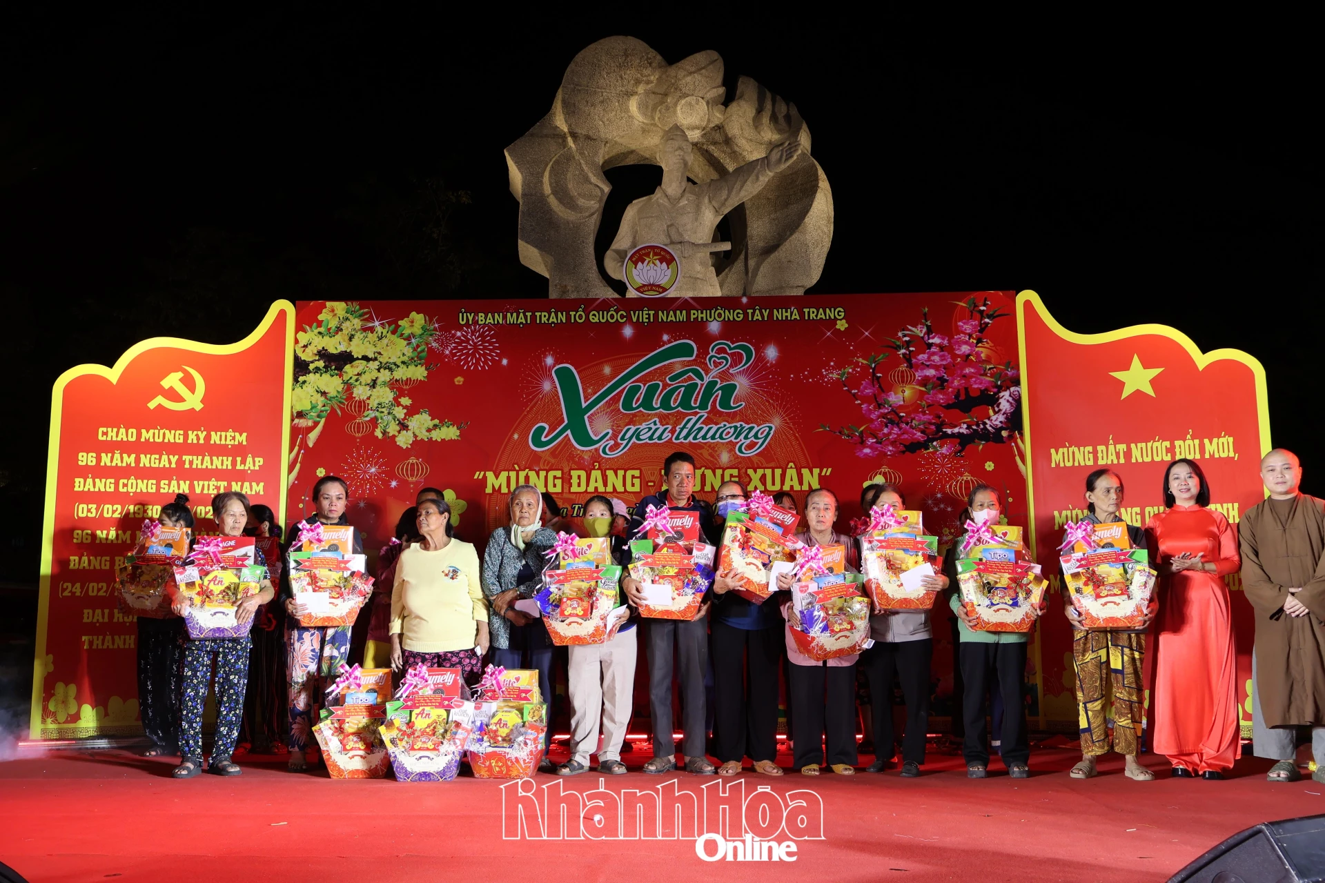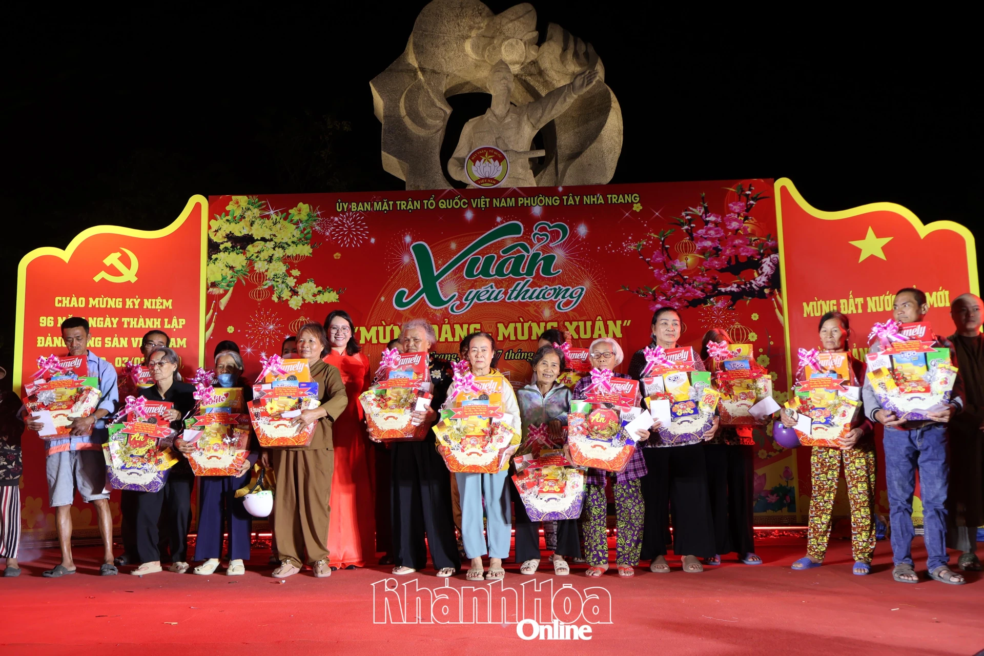 Dịp này, Ủy ban MTTQ Việt Nam phường Tây Nha Trang cùng các mạnh thường quân đã trao 150 suất quà cho các hộ gia đình cận nghèo, có hoàn cảnh khó khăn trên địa bàn phường, giúp người dân có thêm điều kiện đón Tết đầm ấm.