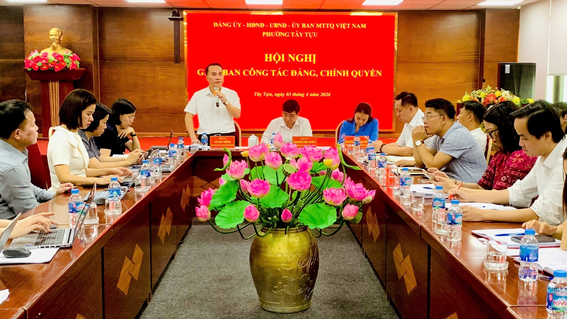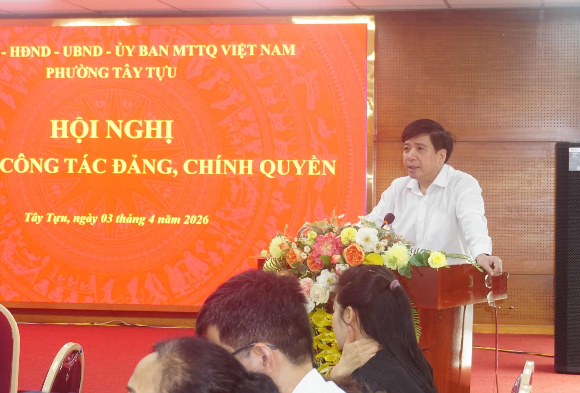 Về nhiệm vụ trọng tâm tháng 4-2026, Bí thư Đảng ủy, Chủ tịch HĐND phường Tây Tựu Nguyễn Hữu Tuyên yêu cầu tiếp tục tập trung xử lý hiệu quả các vấn đề về trật tự đô thị, vệ sinh môi trường, ùn tắc giao thông, an toàn thực phẩm.