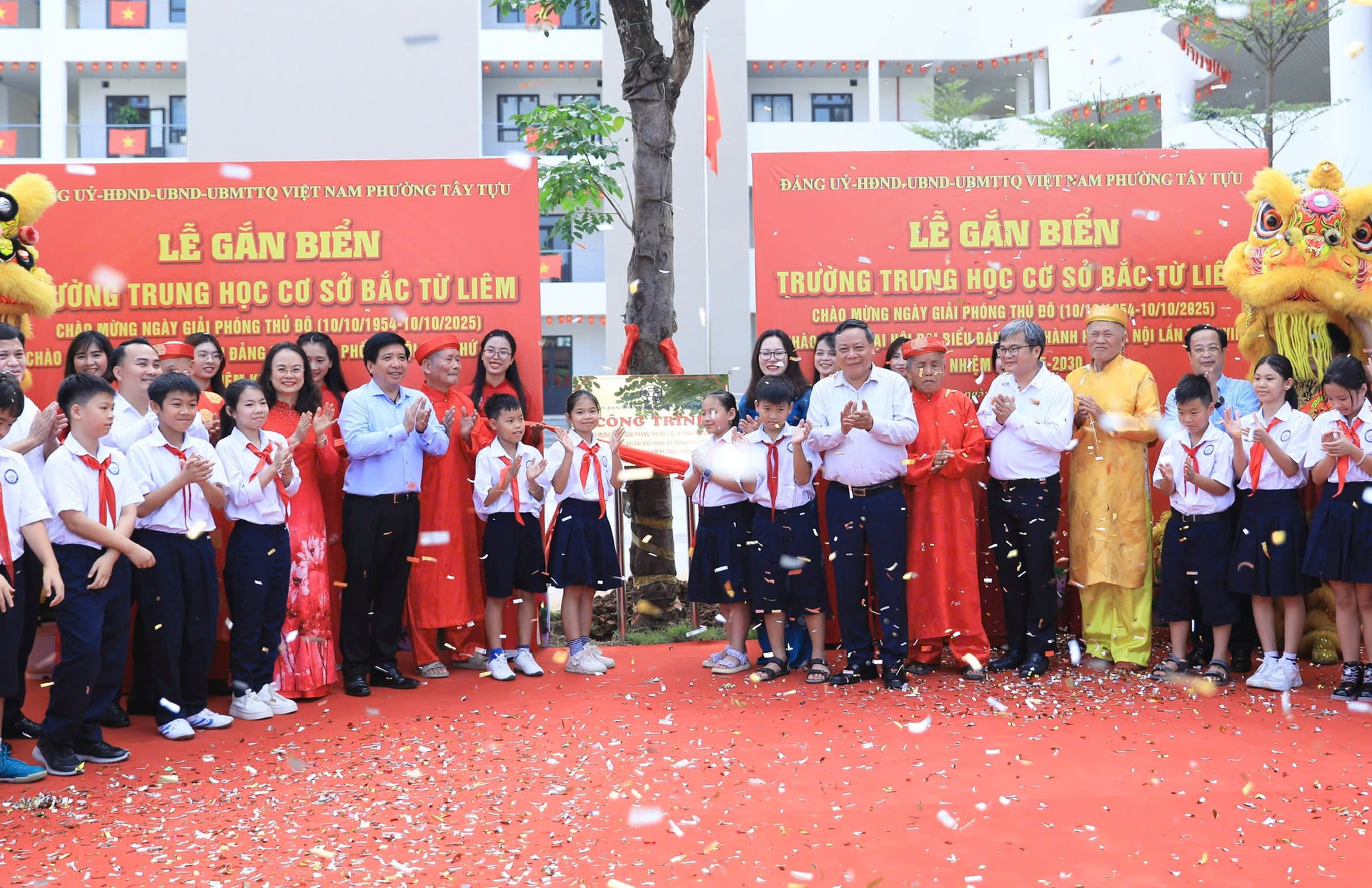 Tại buổi lễ, UBND phường Tây Tựu đã công bố Quyết định của UBND thành phố Hà Nội công nhận Trường Tiểu học Bắc Từ Liêm và Trường Trung học cơ sở Bắc Từ Liêm là 2 công trình được gắn biển kỷ niệm 71 năm Ngày Giải phóng Thủ đô (10/10/1954 - 10/10/2025) và chào mừng Đại hội đại biểu Đảng bộ thành phố Hà Nội lần thứ XVIII, nhiệm kỳ 2025-2030.