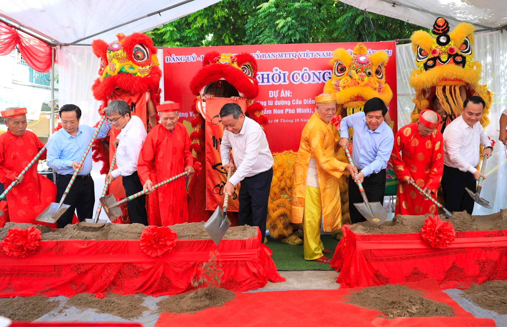 Phó Bí thư Thường trực Thành ủy Hà Nội Nguyễn Văn Phong cùng các đại biểu thực hiện nghi thức khởi công dự án đường giao thông. Ảnh: Quang Thái