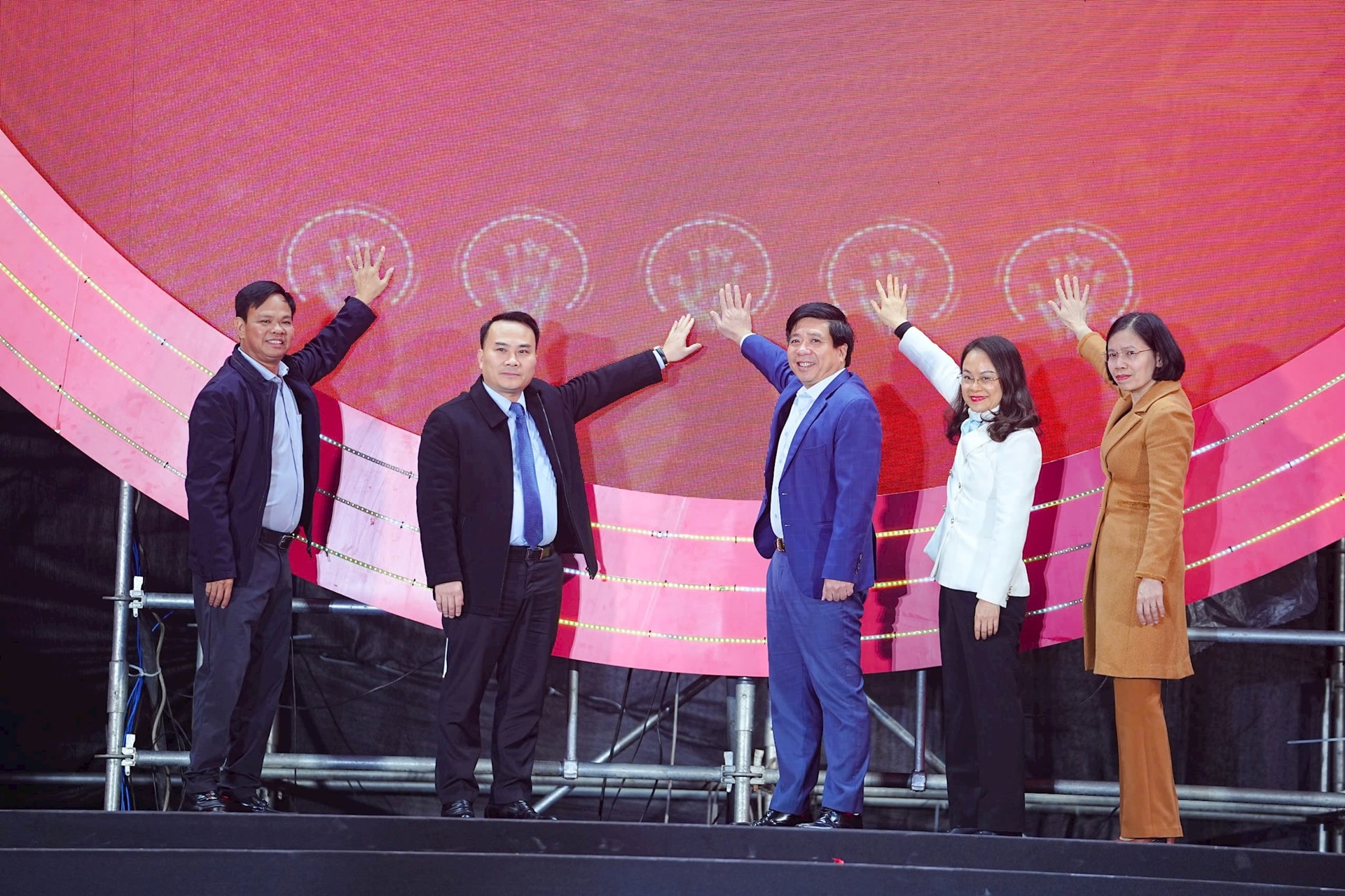 Đại diện lãnh đạo phường Tây Tựu, Tập đoàn FPT thực hiện nghi thức khai mạc chương trình. Ảnh: PV