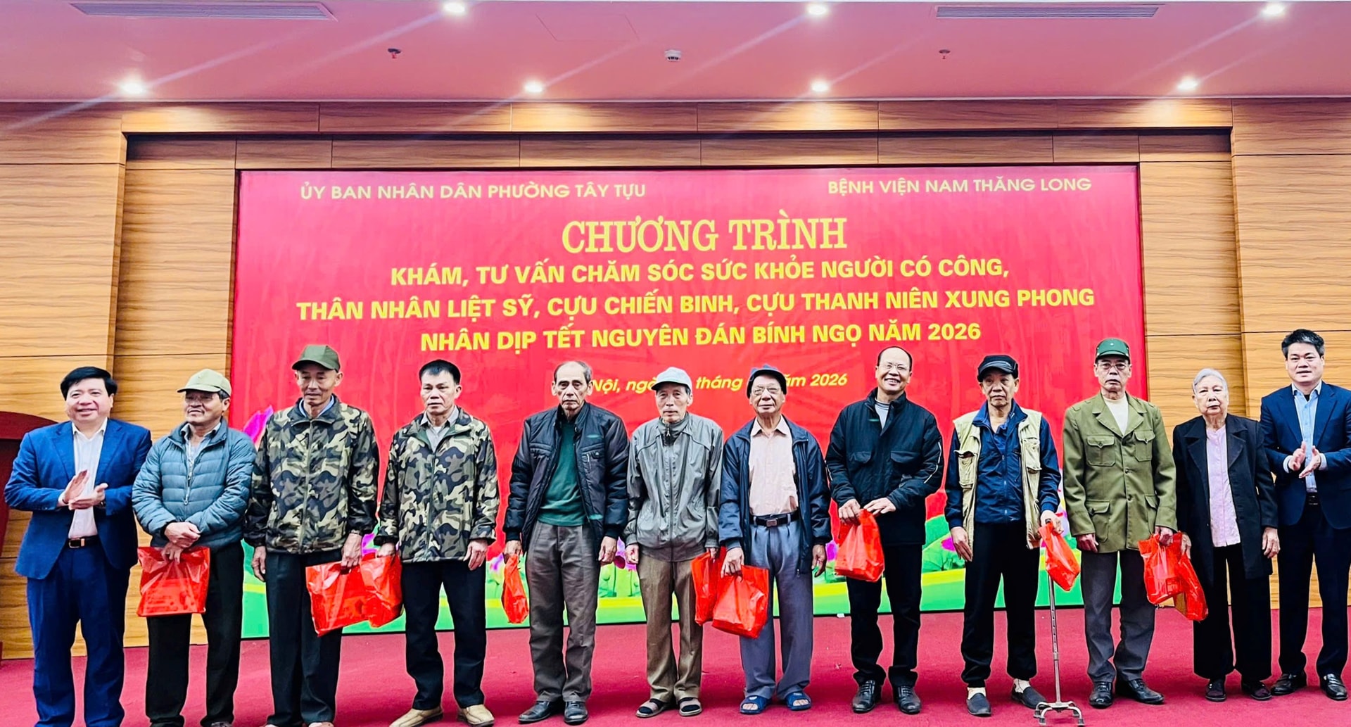 Tại chương trình, đội ngũ y, bác sĩ Bệnh viện Nam Thăng Long đã trực tiếp khám, tư vấn kiến thức chăm sóc sức khỏe, hướng dẫn phòng bệnh và cấp thuốc bổ cho 100% người có công tham dự. Nhân dịp này, lãnh đạo phường và Bệnh viện Nam Thăng Long cũng trao tặng quà, thuốc bổ tới đại diện người có công, góp phần động viên tinh thần, giúp các đối tượng chính sách đón Tết vui tươi, đầm ấm.