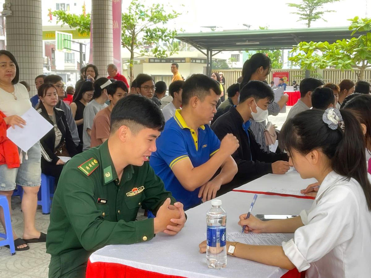 Nhân viên y tế làm các thủ tục cho người tham dự Ngày hội hiến máu tình nguyện tại phường Thanh Khê.