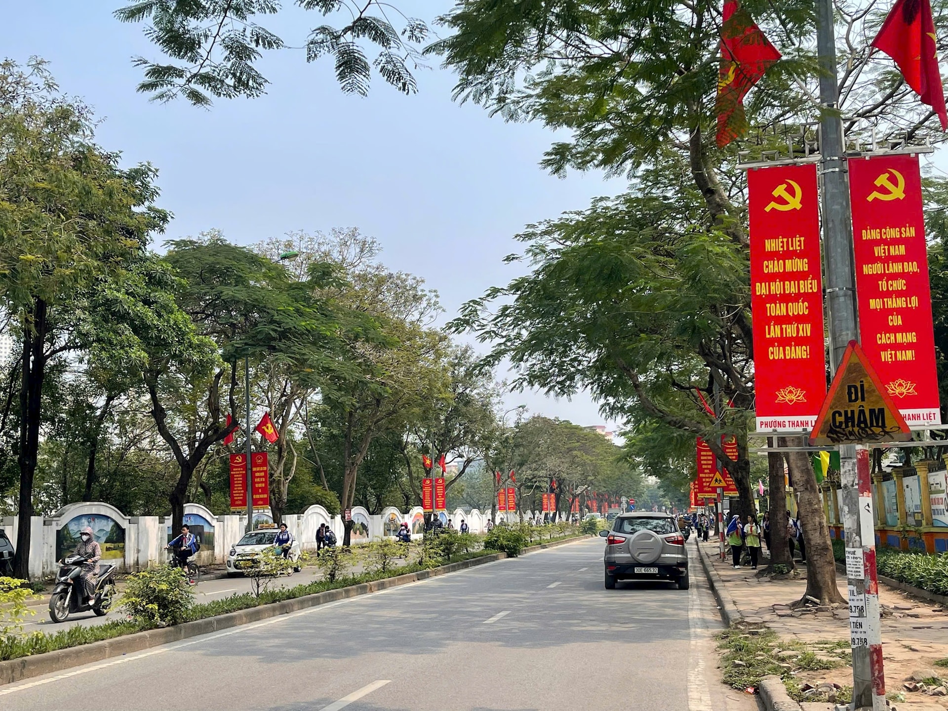 Đường phố được vệ sinh sạch sẽ và treo băng zôn, khẩu hiệu chào mừng ngày ngày bầu cử. Ảnh: Đào Tuyết