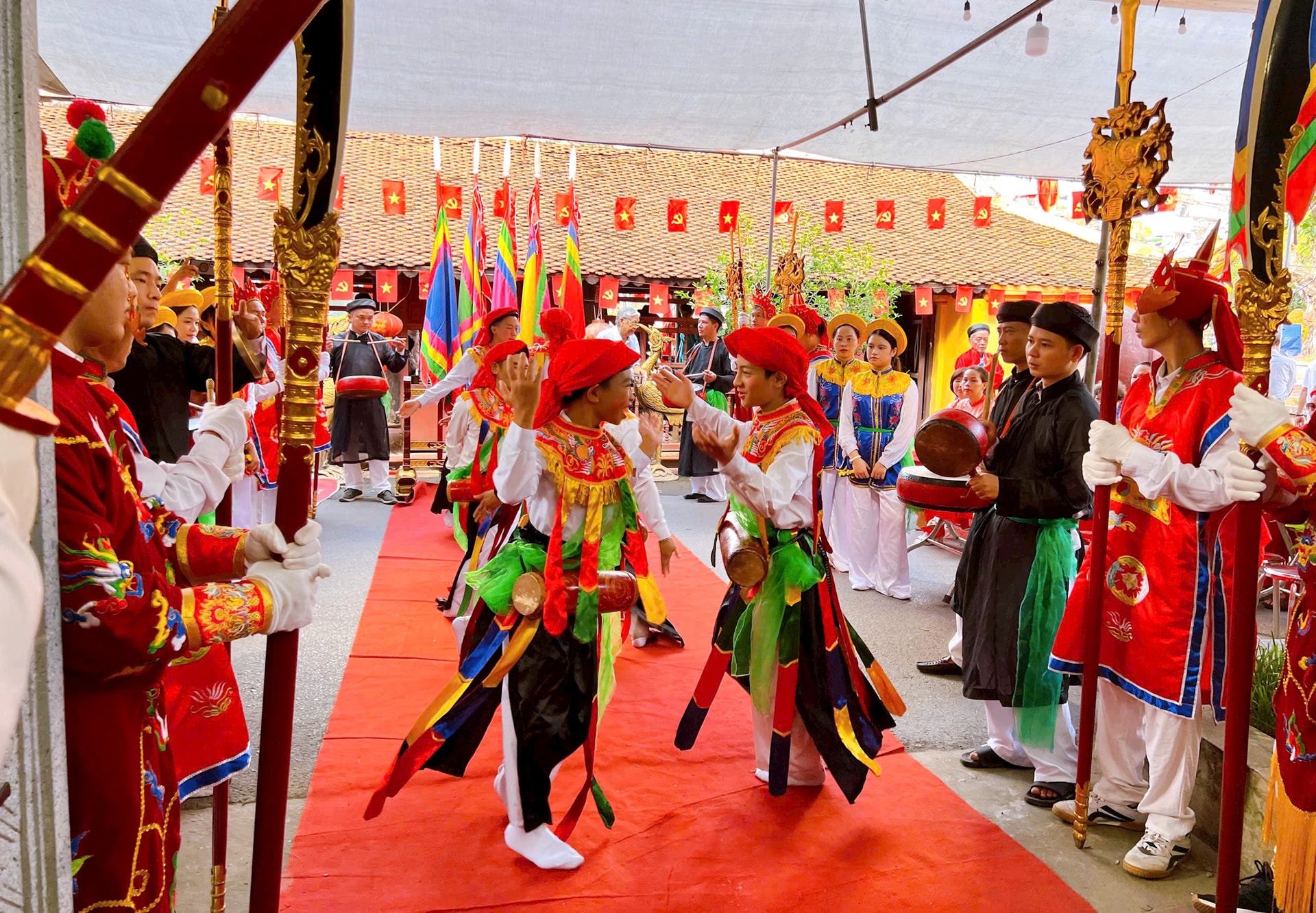 Điệu múa Bồng, làng Triều Khúc vẫn được người dân gìn giữ và phát huy. Ảnh: Nghiêm Liên