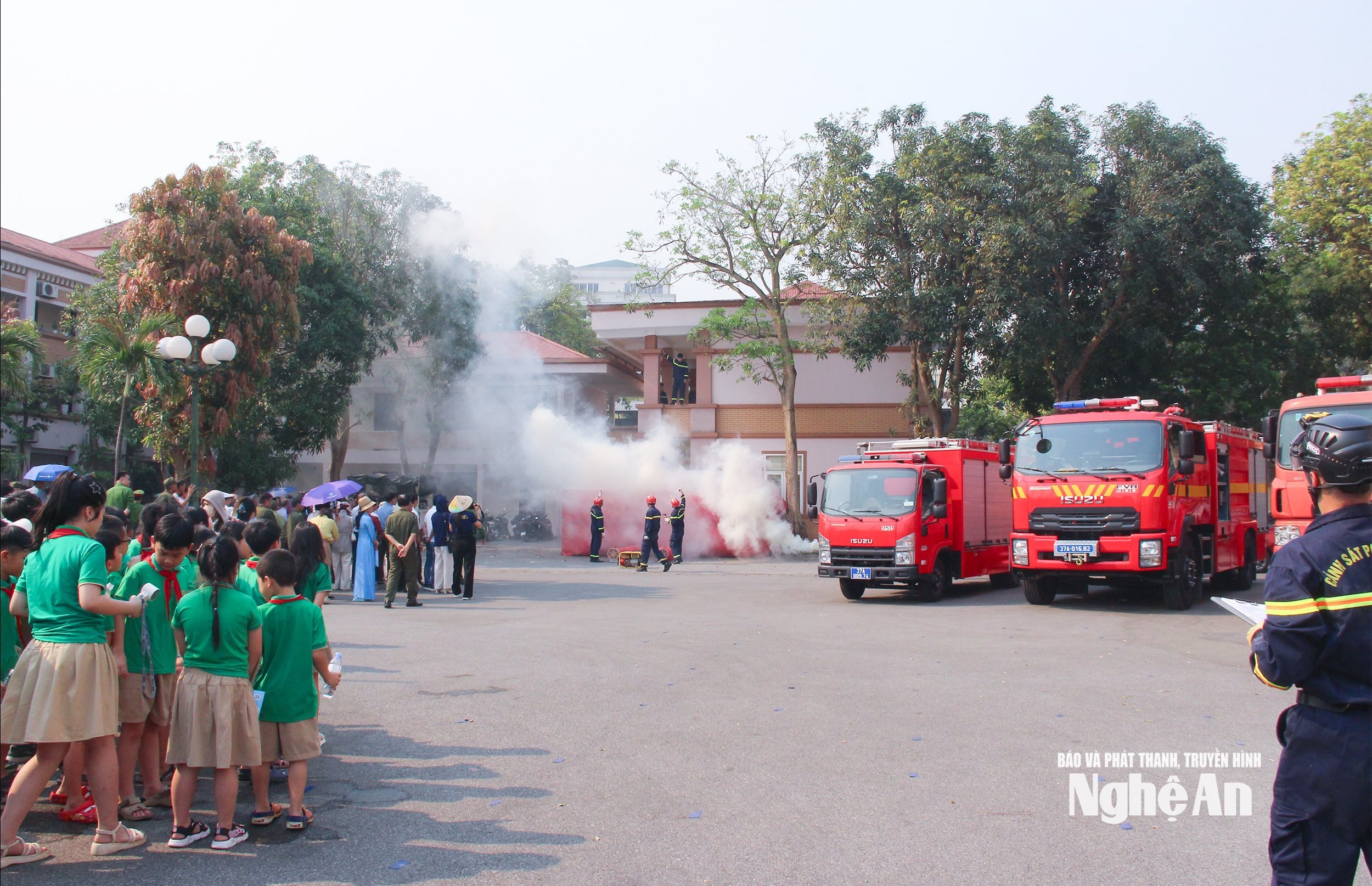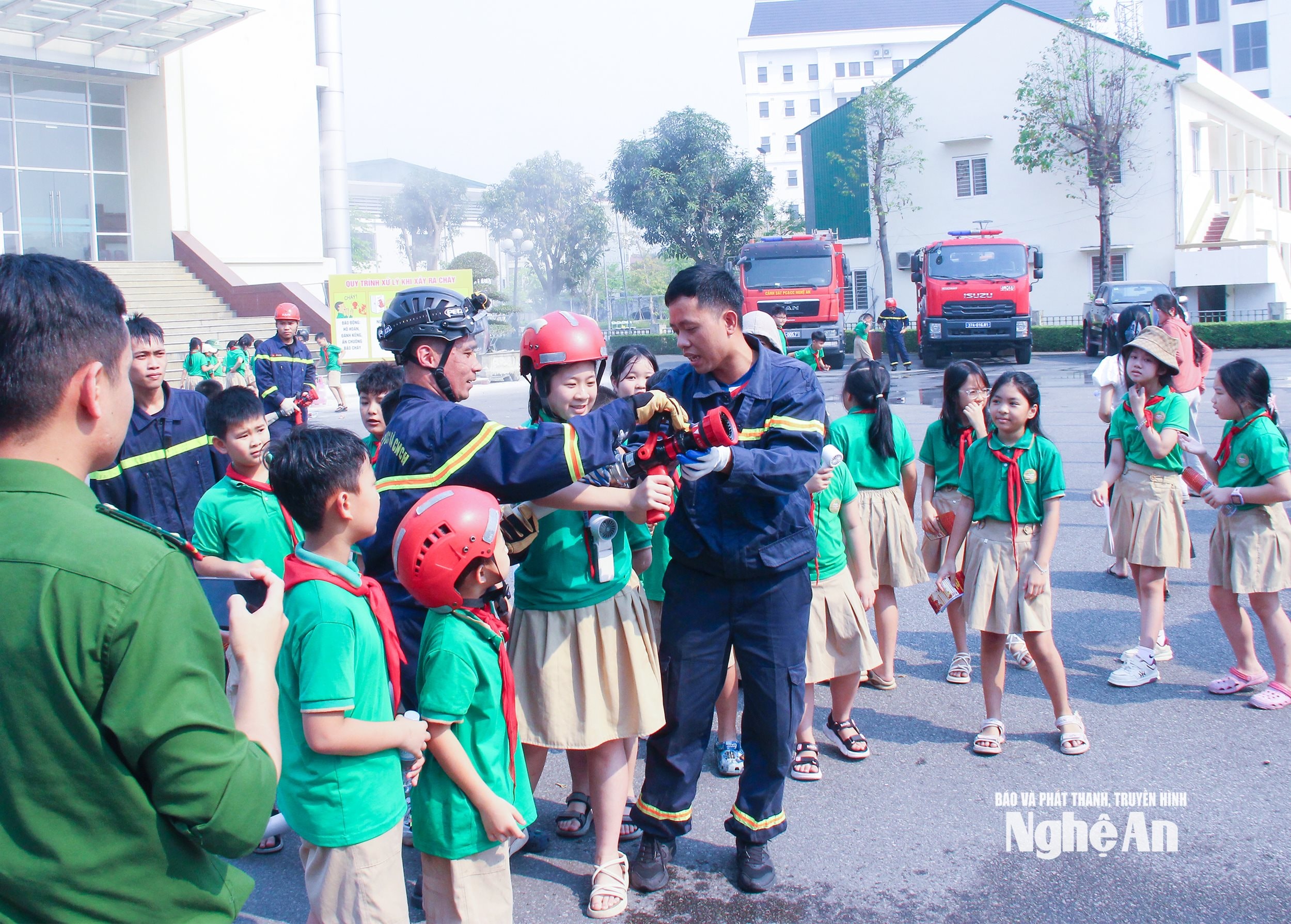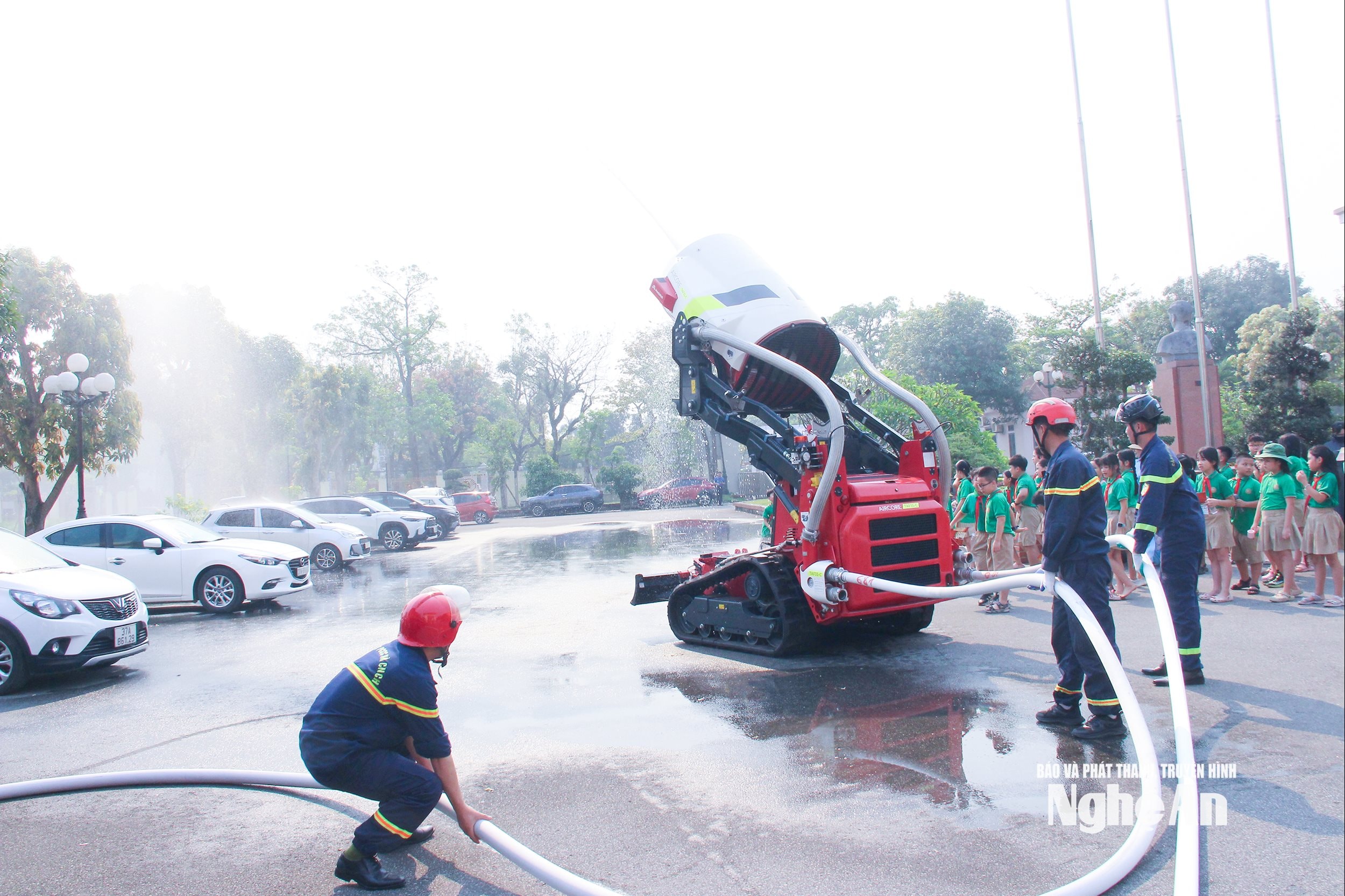 Ngay sau lễ công bố, lực lượng Phòng Cảnh sát phòng cháy, chữa cháy và cứu nạn, cứu hộ, Công an tỉnh đã tổ chức thực hành một số kỹ năng chữa cháy và cứu nạn, cứu hộ tại Trung tâm Hành chính phường Thành Vinh.