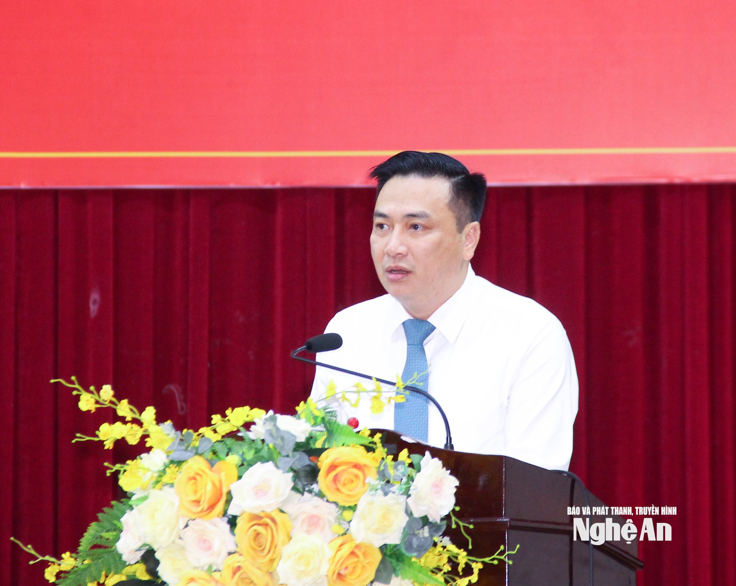 Đồng chí Nguyễn Ngọc Khánh - Trưởng phòng Văn hóa - Xã hội phường Thành Vinh công bố quyết định thành lập Trung tâm Học tập cộng đồng phường Thành Vinh. Ảnh: Mai Hoa