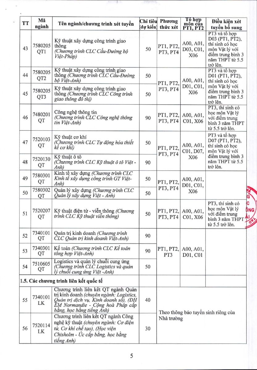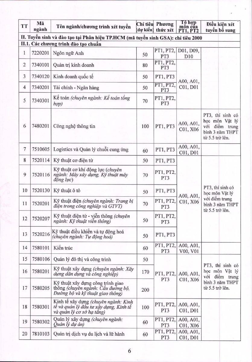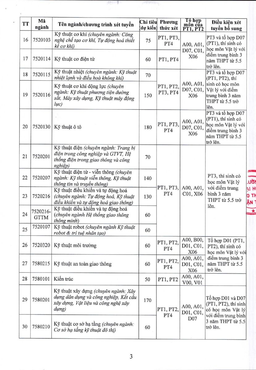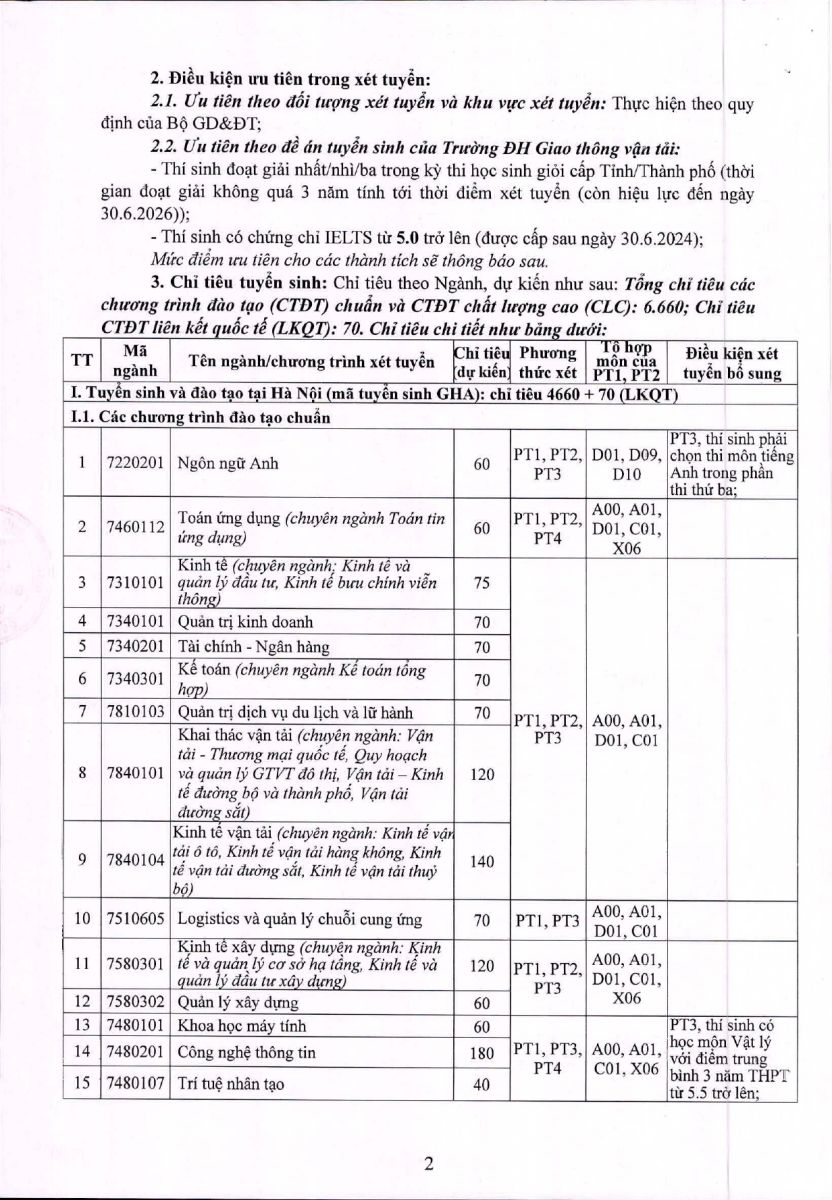 - Ưu tiên theo đề án tuyển sinh của Trường ĐH Giao thông vận tải.