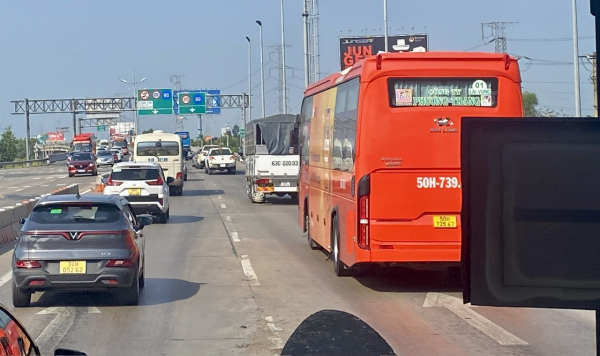 Tại đường dẫn vào cao tốc TP Hồ Chí Minh-Trung Lương lượng phương tiện đông nhưng không ùn ứ. Dòng phương tiện chủ yếu là xe khách TP Hồ Chí Minh đi miền Tây. Chiều ngược lại lượng xe khách đông nhưng lưu thông bình thường.