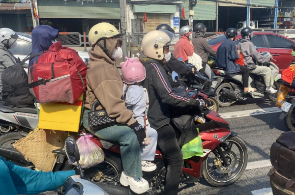 Tại đoạn quốc lộ 1, cửa ngõ vào TP Hồ Chí Minh, người dân từ các tỉnh miền Tây sau kỳ nghỉ Tết sử dụng phương tiện xe máy để trở lại TP Hồ Chí Minh bắt đầu đông dần lên. Các phương tiện lỉnh kỉnh đồ đạc, có phương tiện cả gia đình 4 người kèm theo quà quê lên phố.