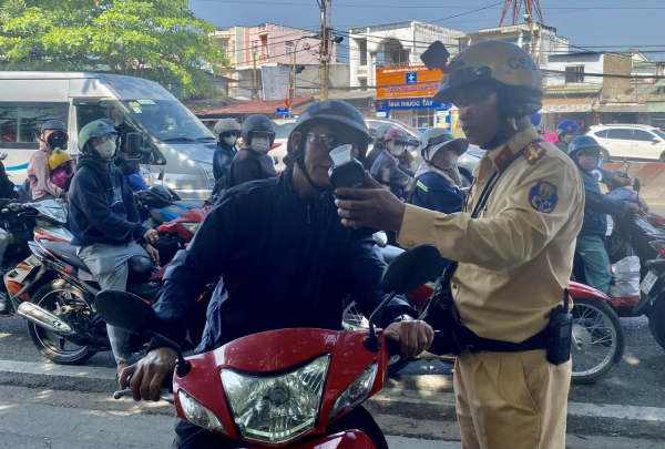 Kiểm tra nồng độ cồn ngẫu nhiên một người điều khiển xe máy từ dưới quê lên thành phố.