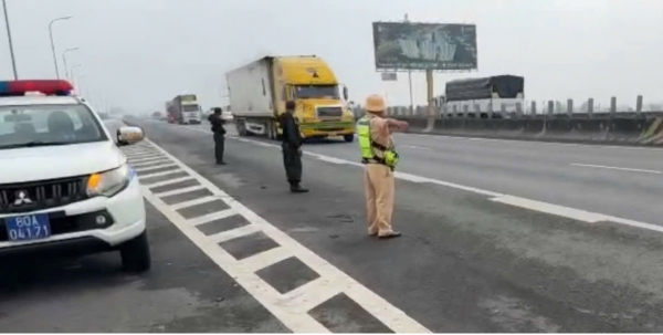 Tổ CSGT thuộc Đội CSGT đường bộ cao tốc số 7, Phòng 6, Cục CSGT, Bộ Công an điều tiết giao thông từ tối hôm trước cho đến sáng nay ghi nhận lượng phương tiện di chuyển trên cao tốc không xảy ra sự cố dù phương tiện đông.