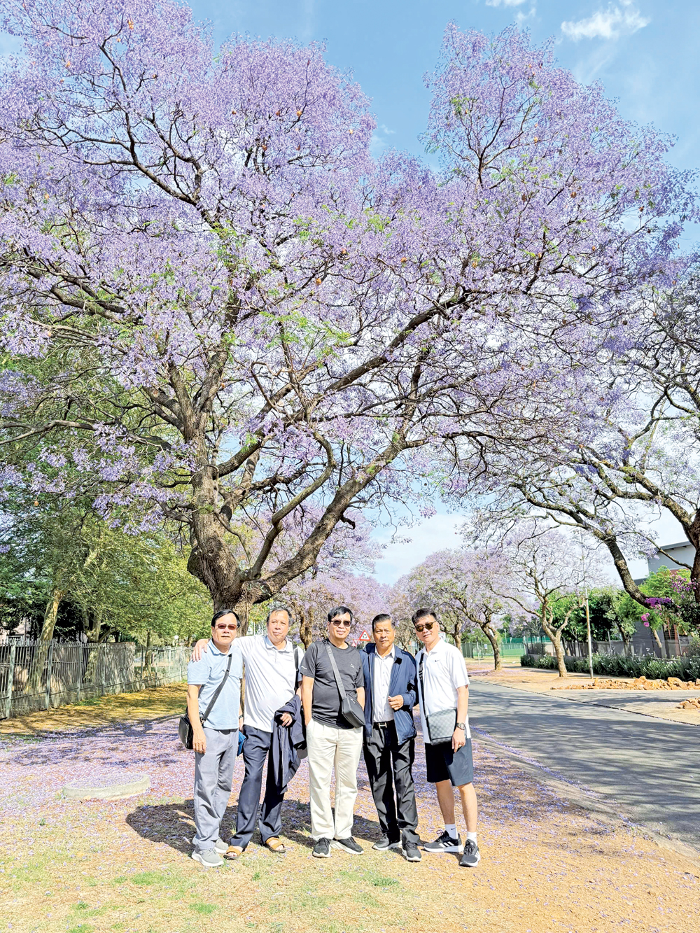 Lần đầu được chứng kiến những đường phố dài, những công viên, quảng trường rộng lớn ở thành phố Pretoria, Johannesburg được phủ một màu tím hoa phượng khiến chúng tôi vô cùng thích thú. Không chỉ có phái đẹp, cánh mày râu cũng mất khá nhiều thời gian chụp ảnh với hoa phượng. Tại thủ đô hành chính Pretoria - nơi được mệnh danh là thành phố hoa phượng tím có những dãy phố được hai hàng cây phượng cổ thụ đan kín tạo thành những đường hầm hoa tím ngắt. Cho xe chạy chầm chậm để ngắm nhìn những đường hoa ấy, phóng tầm mắt là bầu trời xanh không một gợn mây, tiếp đến là những tầng lớp hoa tím ken dày, dưới mặt đất là những cánh hoa rơi tạo thành khung cảnh đẹp nao lòng, một bức vẽ khổng lồ tuyệt bích với sắc tím chủ đạo.