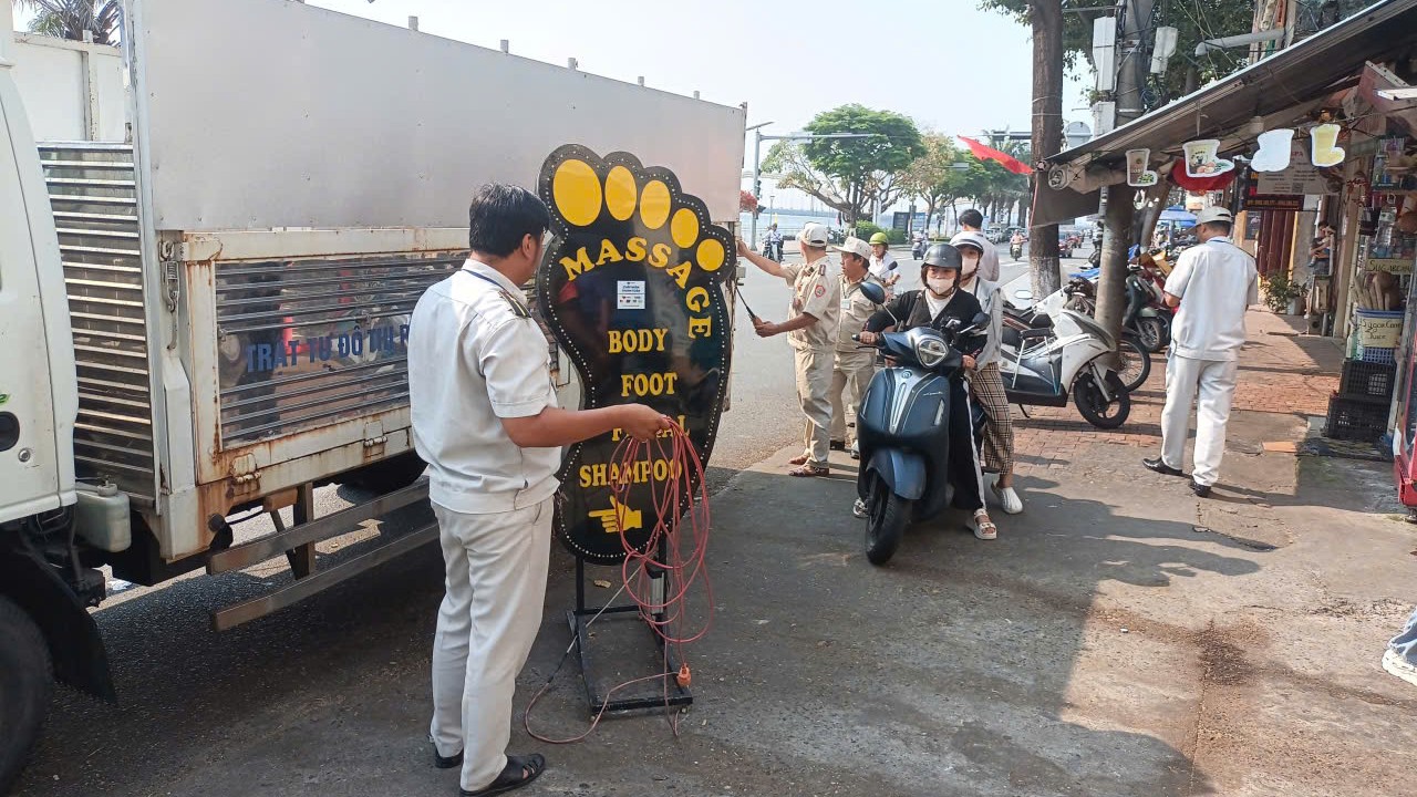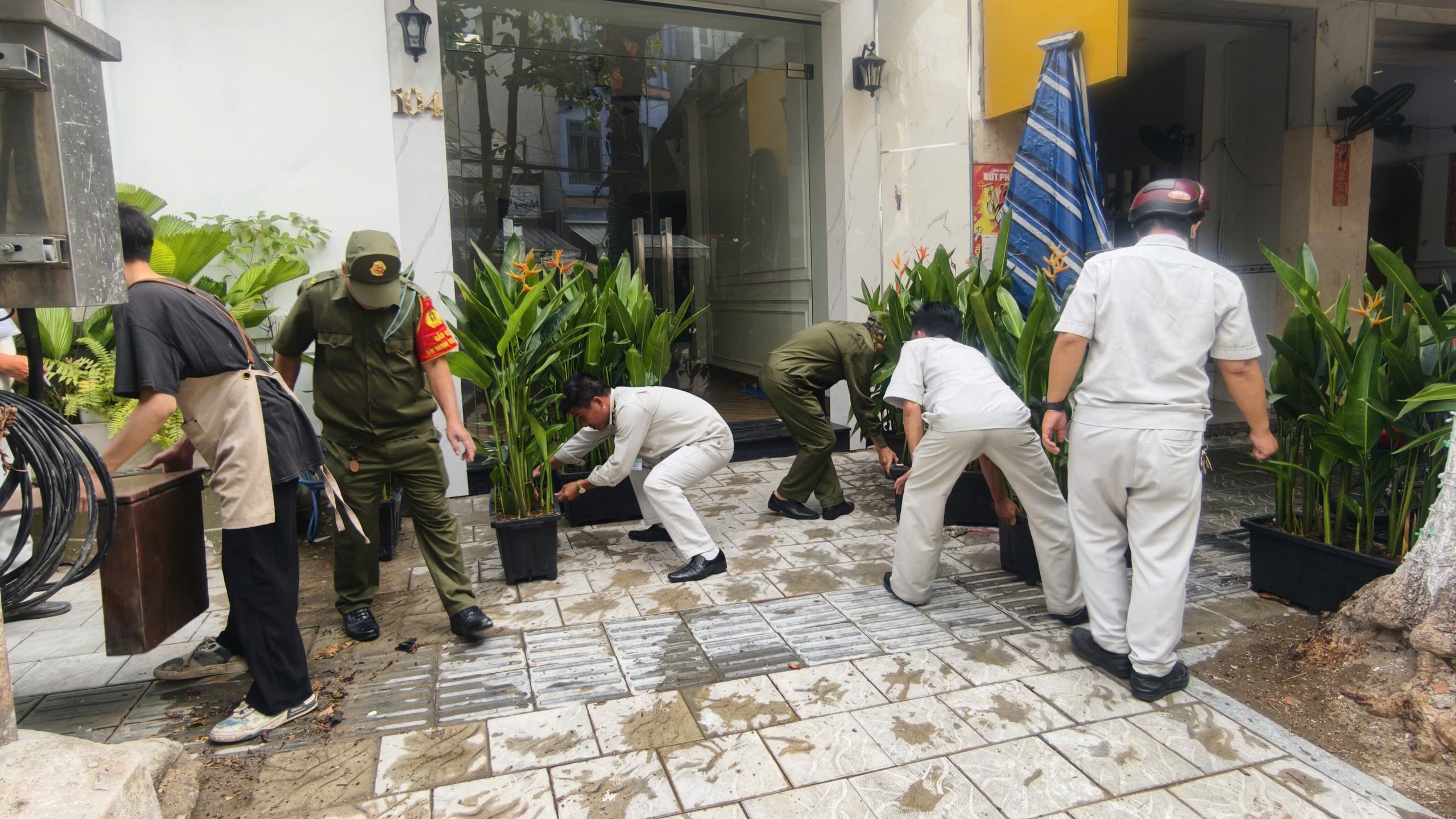 Lực lượng chức năng phường Hải Châu ra quân xuyên đêm để giữ trật tự vỉa hè.