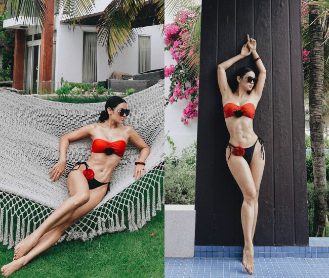 Phương Trinh Jolie diện bikini khoe đôi chân dài mướt mắt cùng cơ bụng săn chắc.