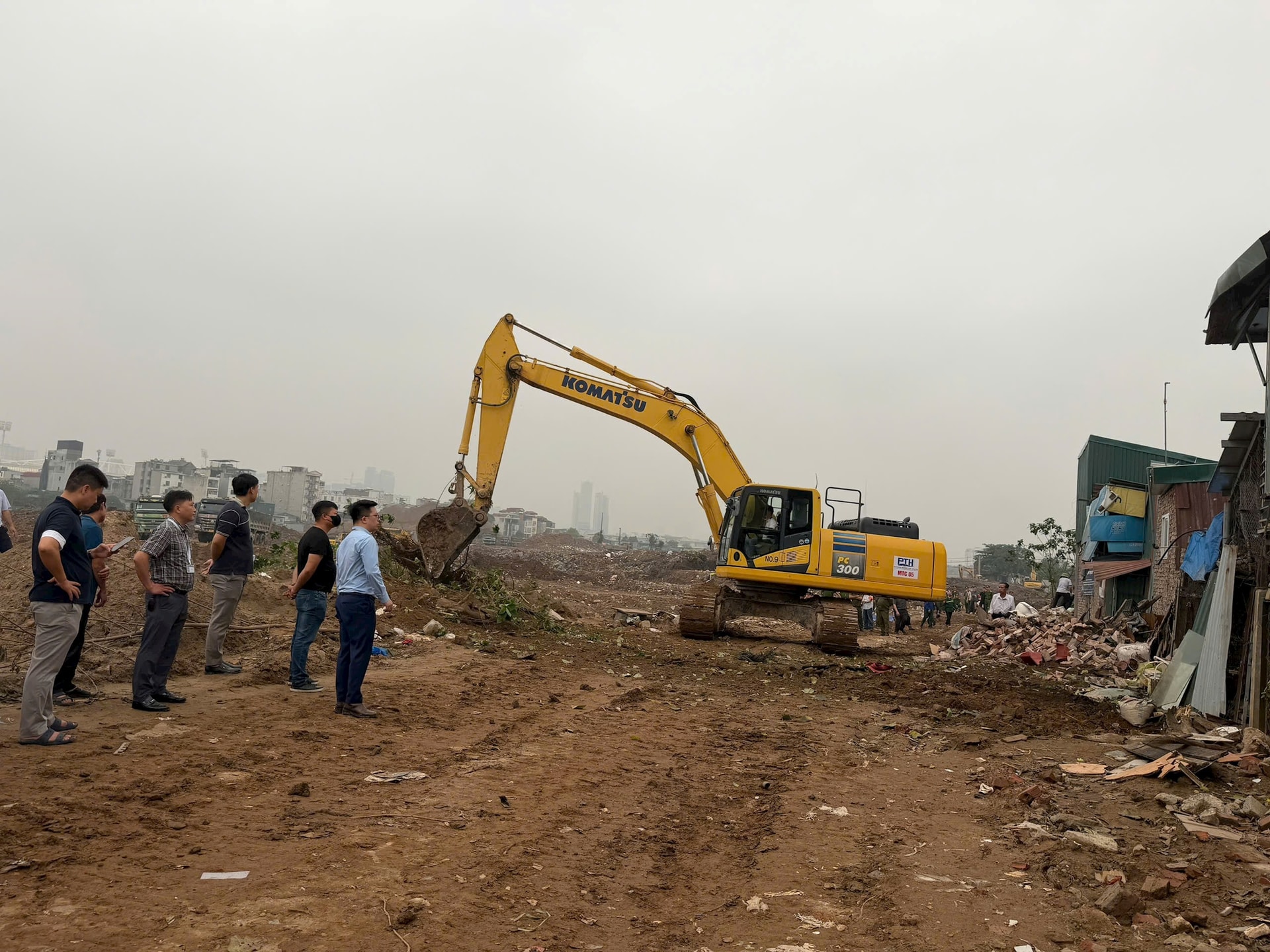 Việc cưỡng chế công trình vi phạm, tháo gỡ điểm nghẽn, đảm bảo tiến độ dự án hồ điều hòa Phú Đô. Ảnh: Thu Phương