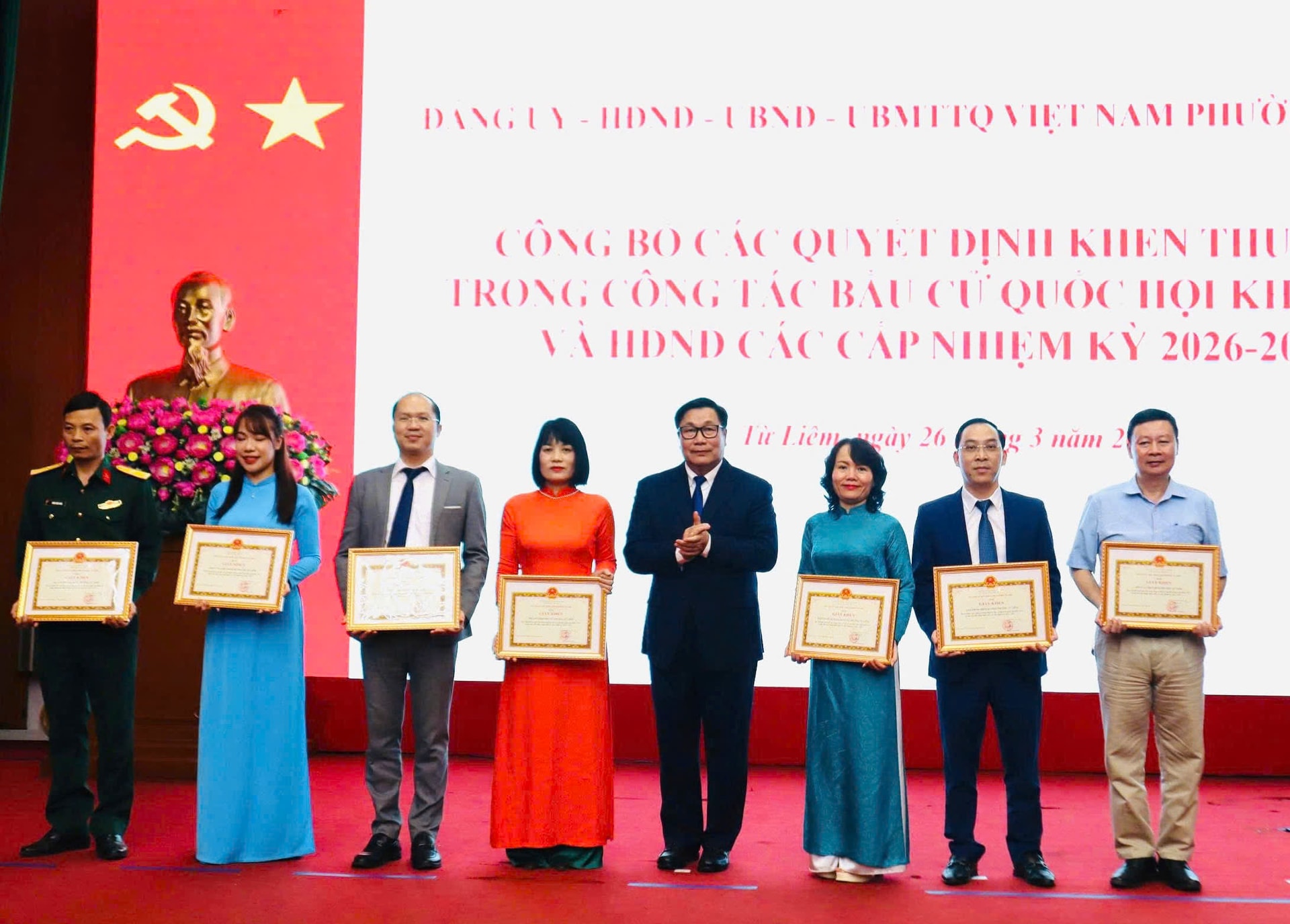 Trao Giấy chứng nhận đại biểu HĐND phường Từ Liêm khóa II, nhiệm kỳ 2026-2031. Ảnh: Trần Hòa